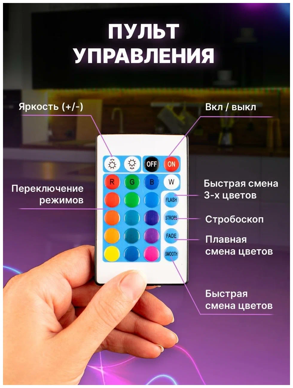 | Дополнительная информация | Светодиодная лента 5 метров, пульт ДУ, контроллер, СЗУ, коробка |
