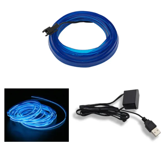 Подсветка салона автомобиля неоновая нить, синий, 5 метров, питание от USB, неоновая подсветка салона автомобиля, неоновая лента для авто, неоновая подсветка салона автомобиля, светодиодная лента в машину