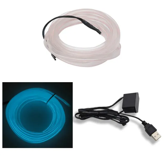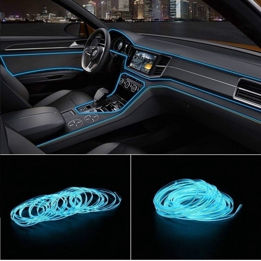 Подсветка салона автомобиля неоновая нить, Ледяной голубой, 5 метров, питание от USB, неоновая подсветка салона автомобиля, неоновая лента для авто, неоновая подсветка салона автомобиля, светодиодная лента в машину
