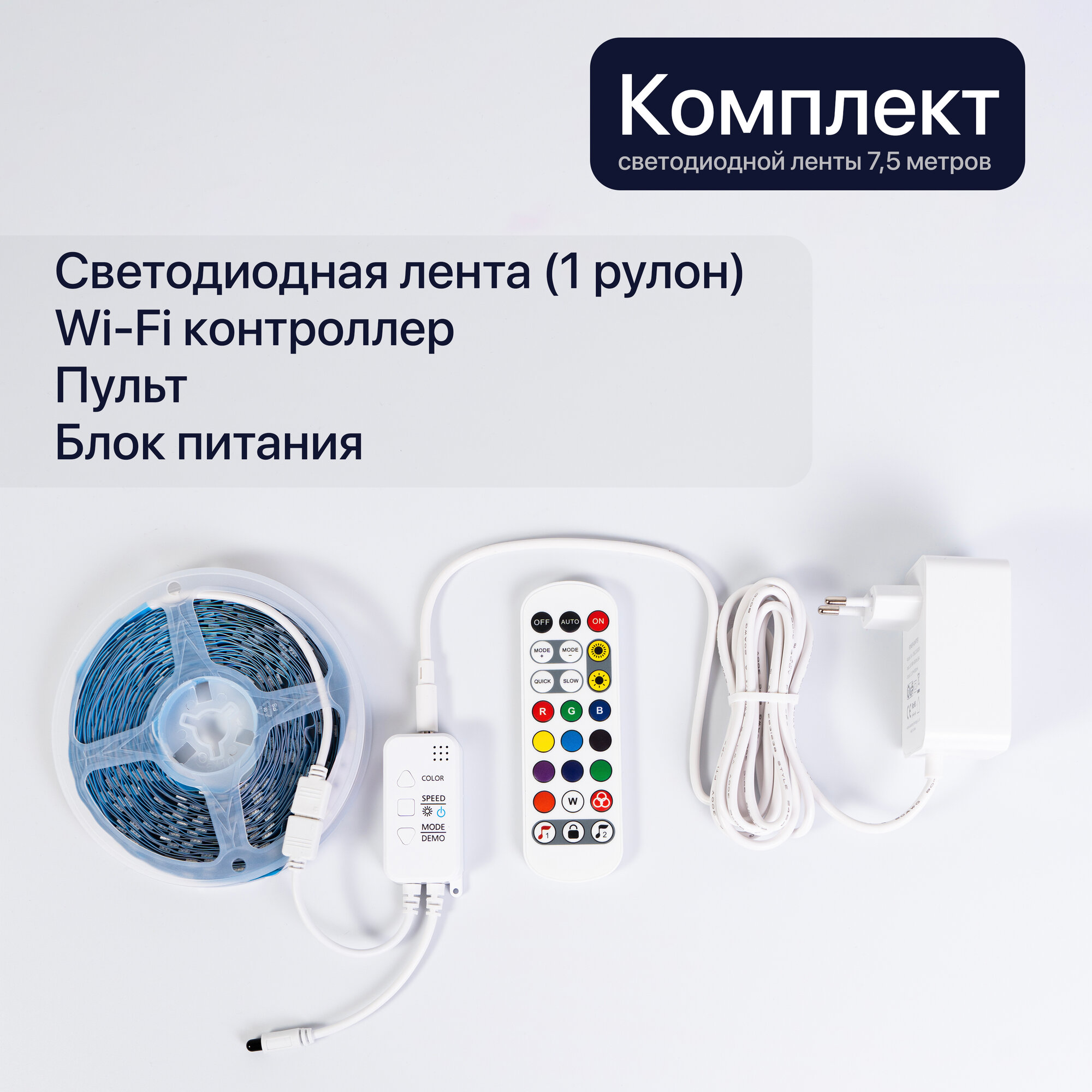 Светодиодная лента 7,5 метров, 30 светодиодов/метр. Работает с Алисой.