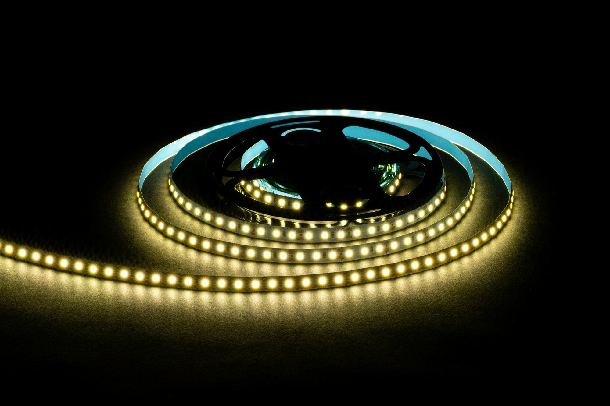 Светодиодная лента OGM LSE-257 с напряжением 12В, цвет свечения дневной белый 4000К, 120д/м, 9,6Вт/м, smd2835, IP20, 7Лм/чип, длина 5 м. интересное: