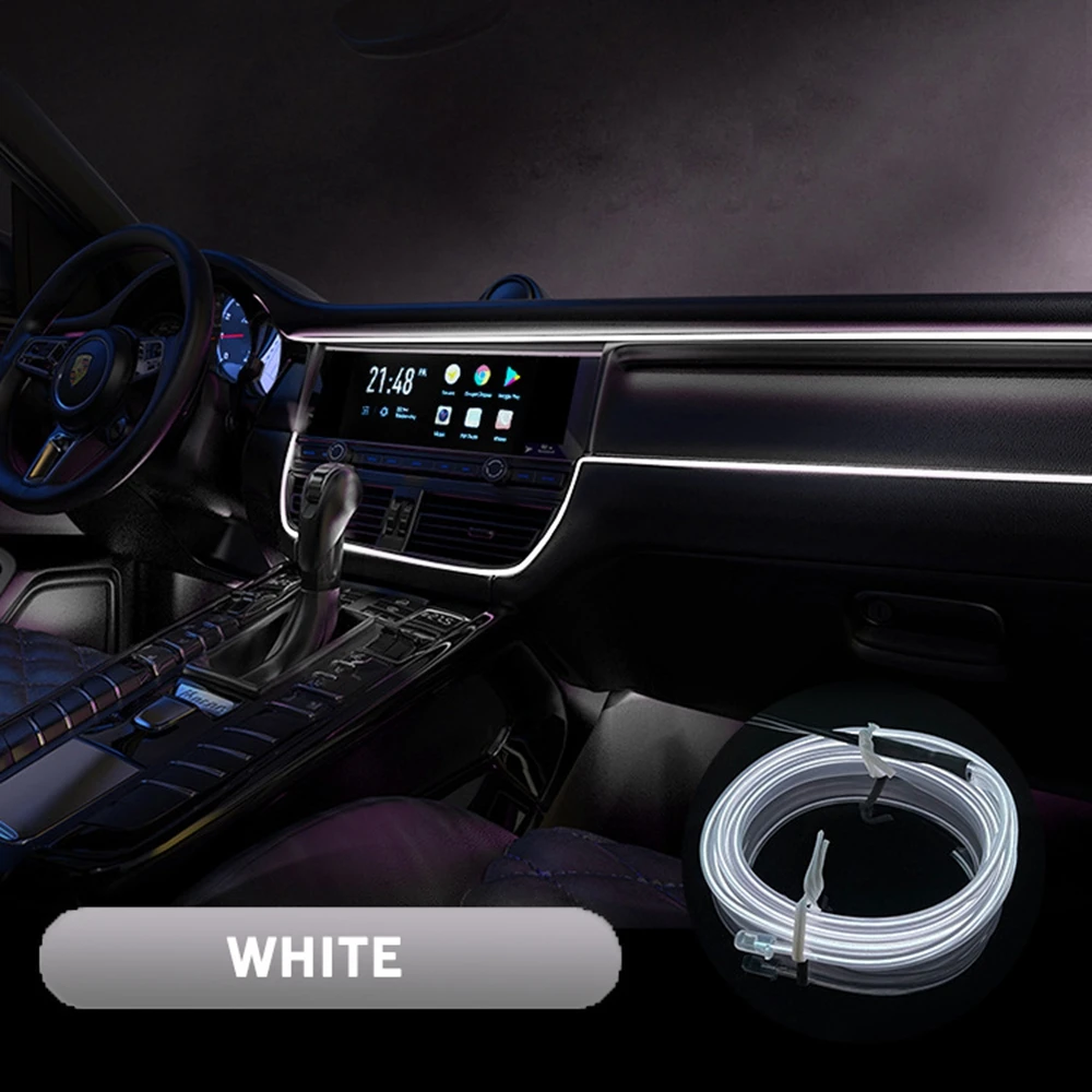 Подсветка салона автомобиля неоновая нить, белый, 5 метров, в прикуриватель 12В, неоновая подсветка салона автомобиля, неоновая лента для авто, неоновая подсветка салона автомобиля, светодиодная лента в машину