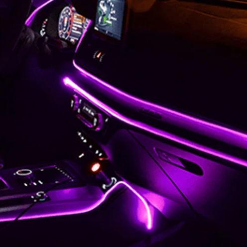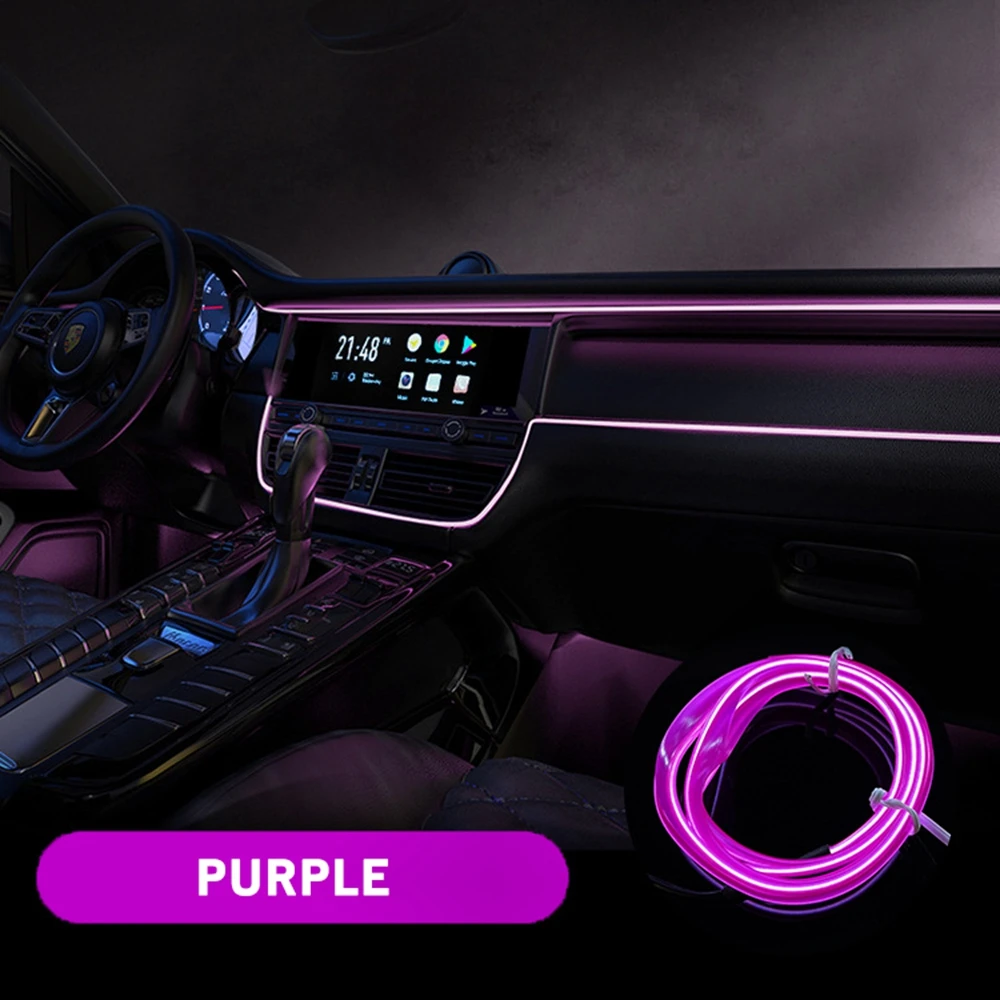 Неоновая нить для подсветки салона авто, светодиодная лента в машину в салон, 5 метров фиолетовый, от прикуривателя 12В, подсветка салона авто