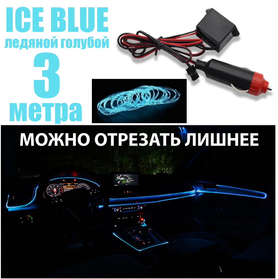 Подсветка салона автомобиля неоновая нить, Ледяной голубой, 5 метров, в прикуриватель 12В, неоновая подсветка салона автомобиля, неоновая лента для авто, неоновая подсветка салона автомобиля, светодиодная лента в машину