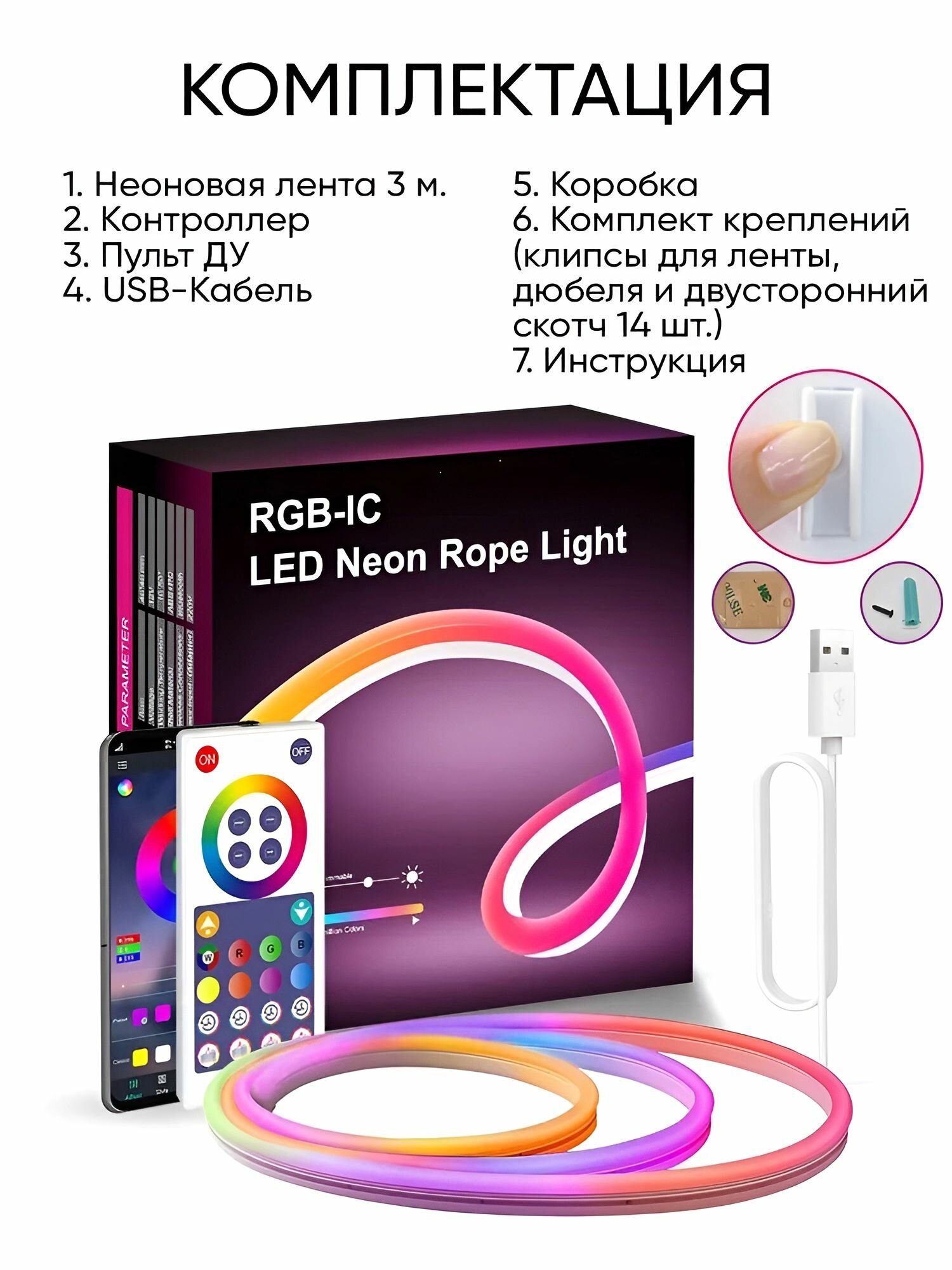 Гибкий неон, RGB, 5 метров, Совместима с умным домом Алиса интересное: