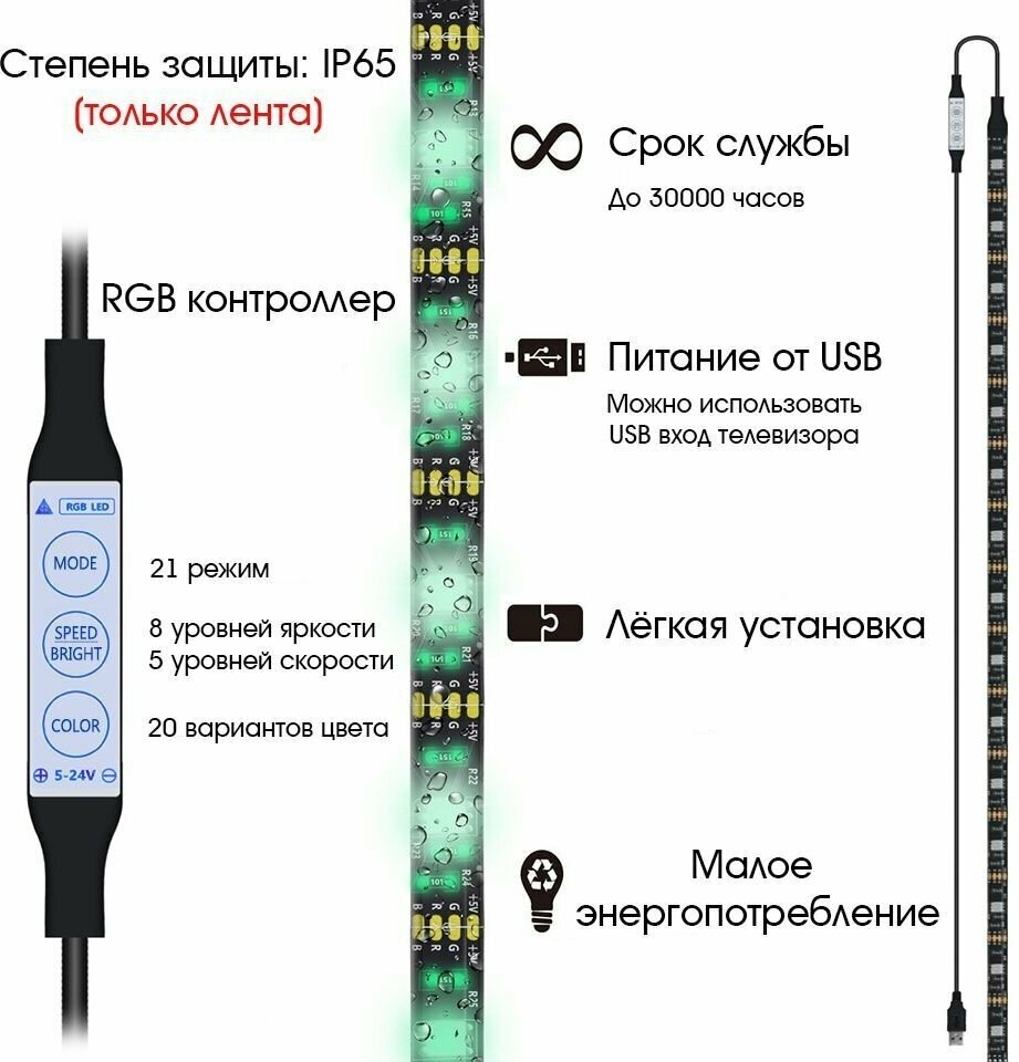 Светодиодная лента 1м (USB) Огонек OG-LDL09 RGB интересное: