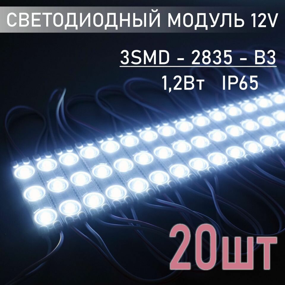 Светодиодный модуль 12В, белый холодный IP65, В3, 2835, набор 20 шт. интересное: