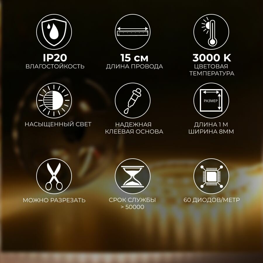 Светодиодная лента на батарейках, 1 метр, теплый белый свет, IP20, LED 60/м интересное: