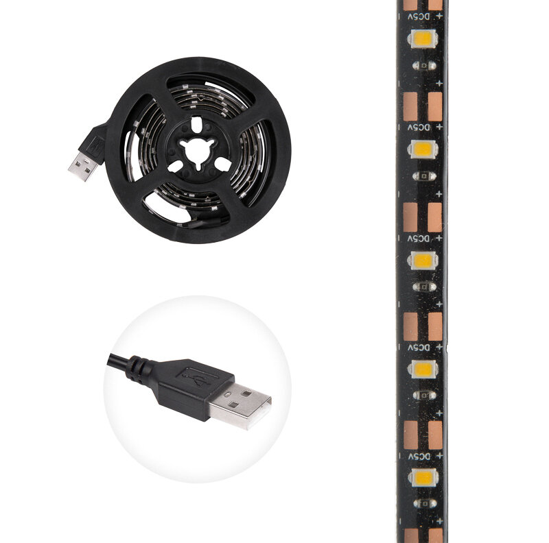 Lamper Светодиодная лента LED USB 5В, 1 м, 8 мм, IP65, SMD 2835, 60 LED/m, свет белый 6500 K 141-385