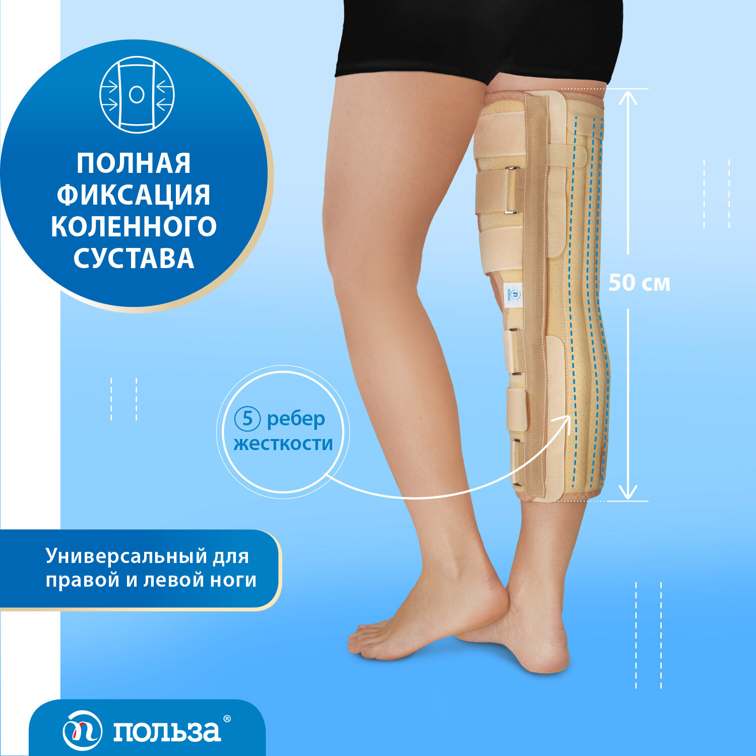 Ортез коленный Польза 0808, размер универсальный, высота 50 см, бежевый интересное: