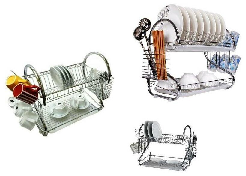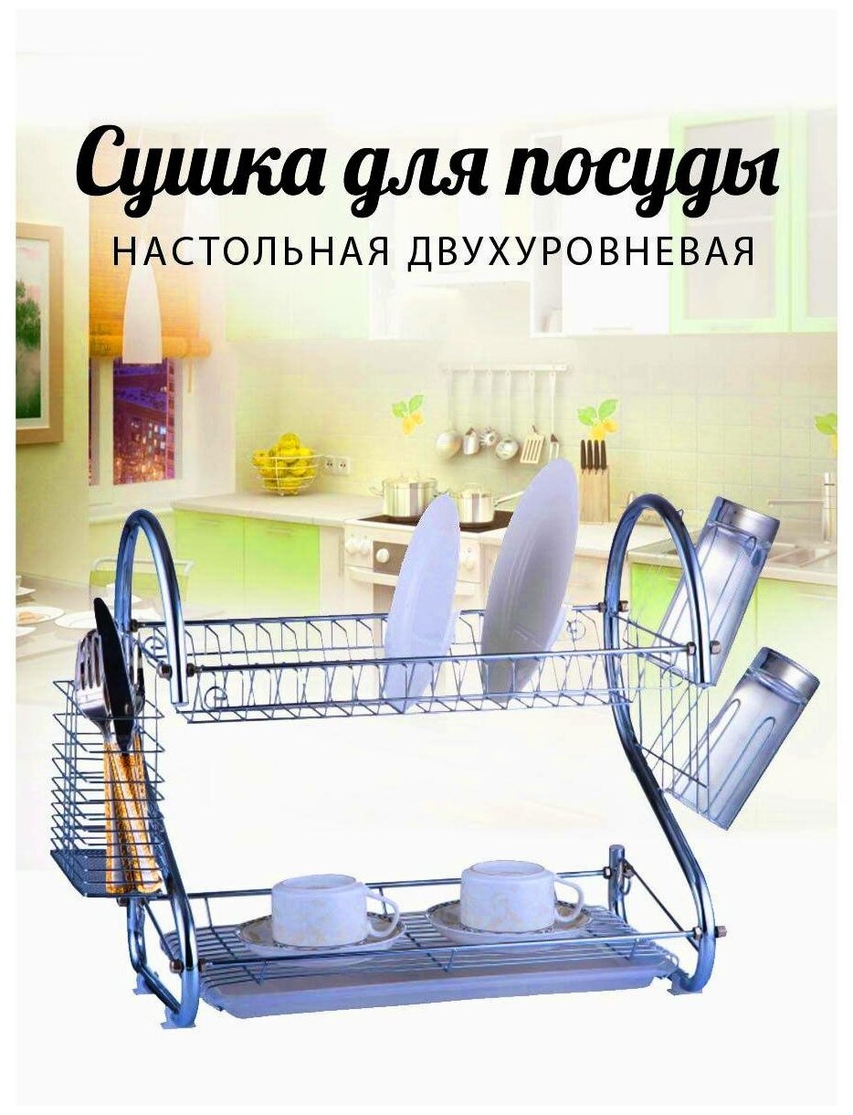 Металлическая настольная сушилка для посуды с поддоном в шкаф 2-х ярусная 40*37*24/ Luoweite интересное: