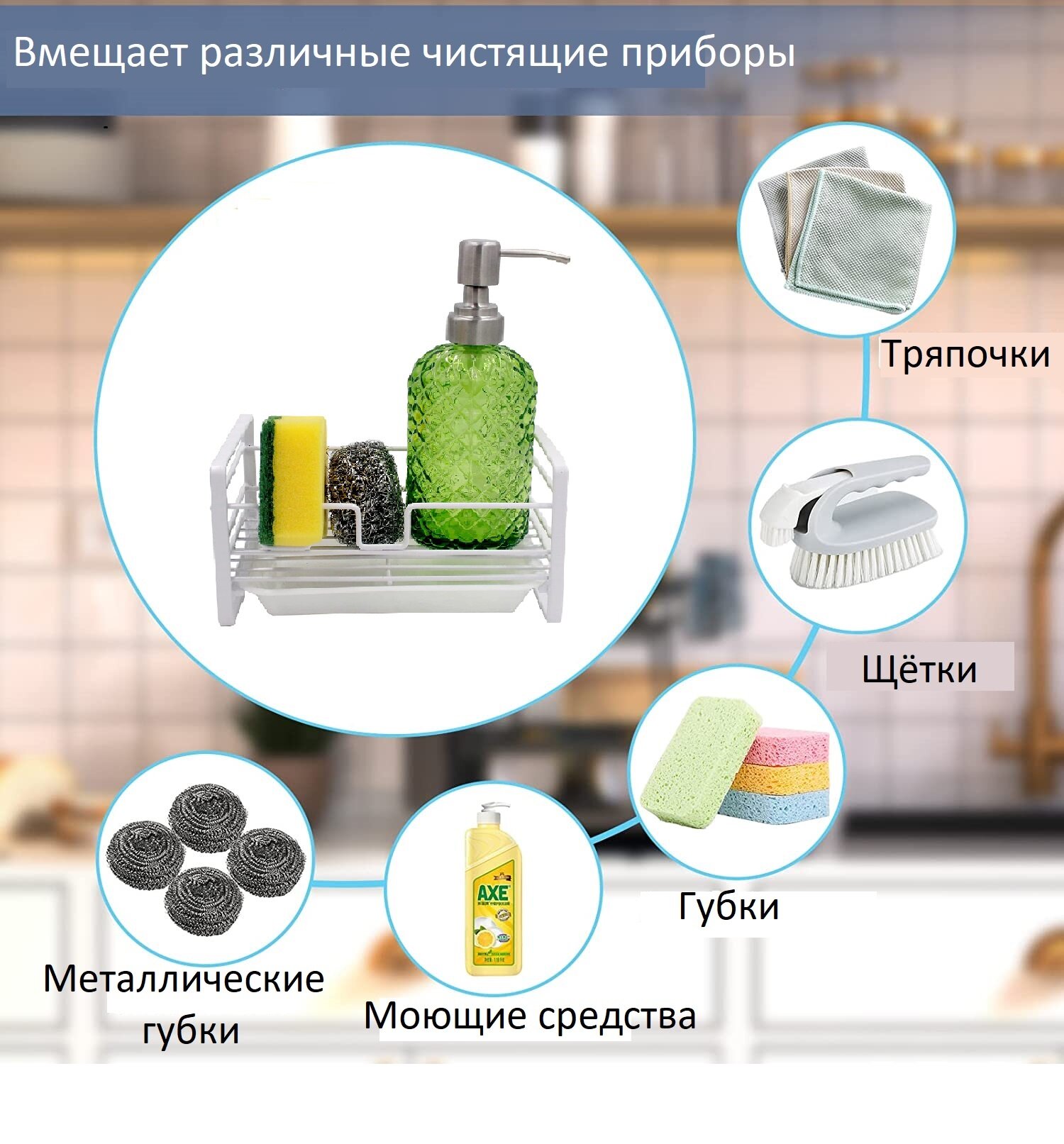 Кухонный органайзер на мойку / кухонный держатель для губки, тряпочек, моющих средств интересное: