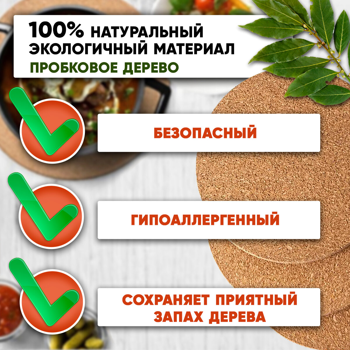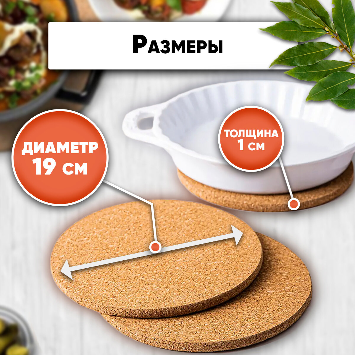 Подставка под горячее SBX круглая пробка 19 см набор 3 шт, бежевый интересное: