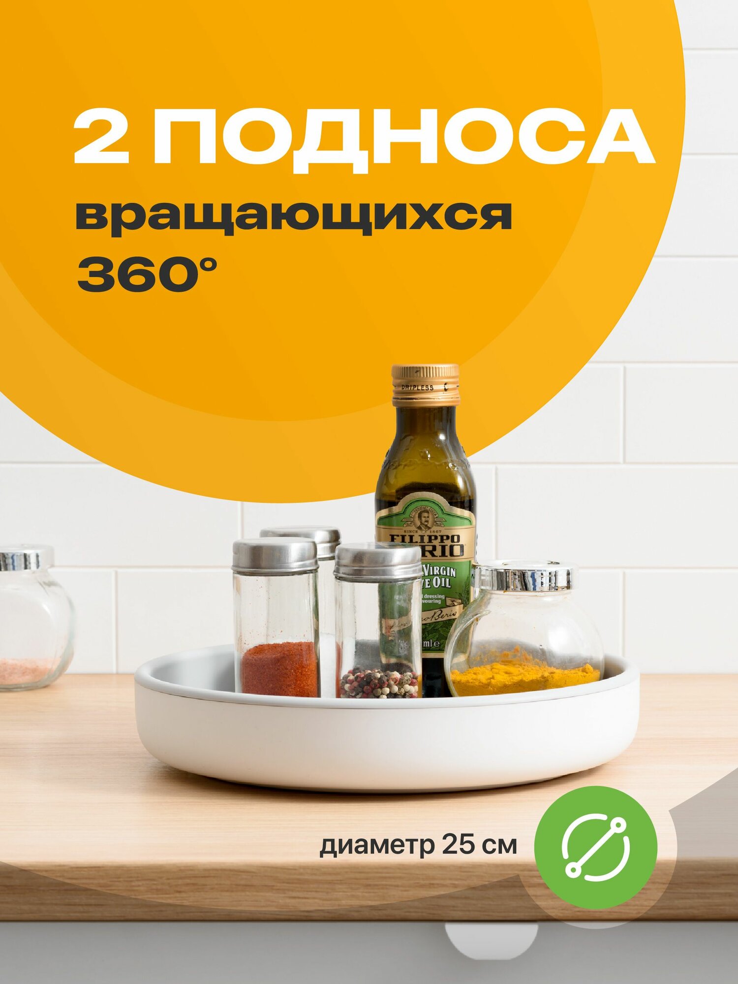 Купить Вращающийся поднос для кухни Shiny Kitchen, Подставка органайзер для специй и приправ крутящаяся, 2 шт