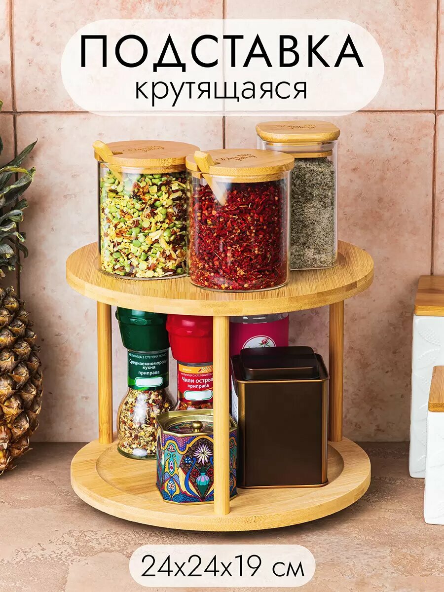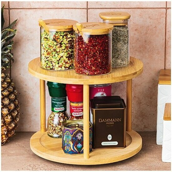 Подставка 2-уровневая 24,5х24,5х17,5 см Elan Gallery, вращающаяся, многофункциональная, бамбук интересное: