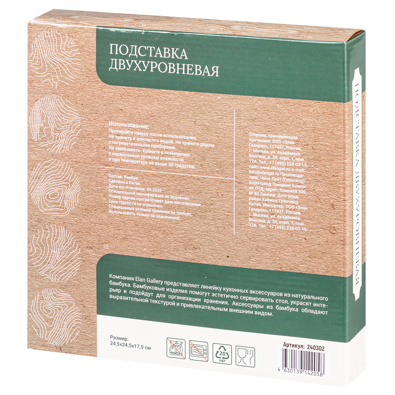 Купить Подставка 2-уровневая 24,5х24,5х17,5 см Elan Gallery, вращающаяся, многофункциональная, бамбук