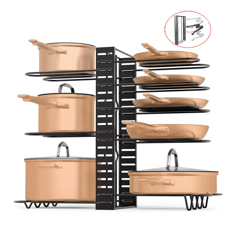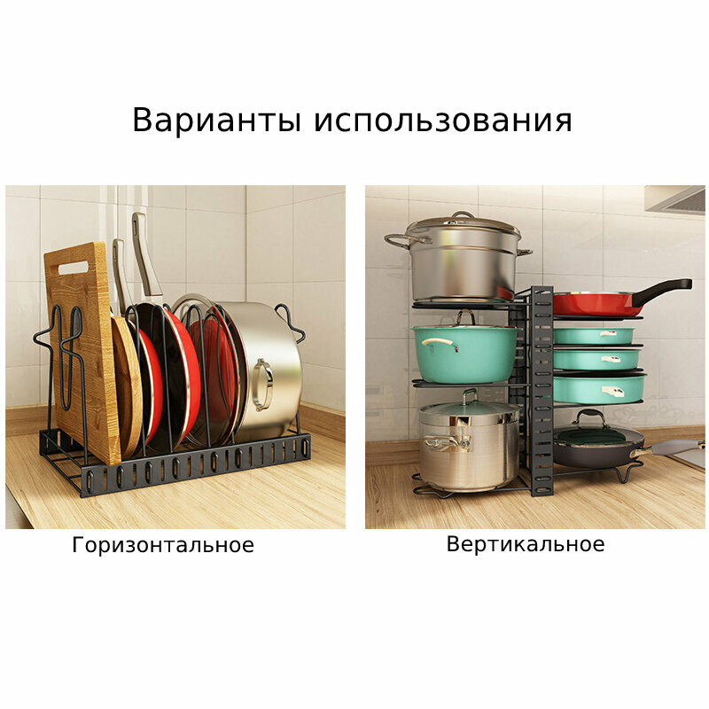 Полка стойка подставка органайзер держатель для кухонной посуды и сковородок (8 ярусов)/ Стеллаж стойка для хранения посуды интересное: