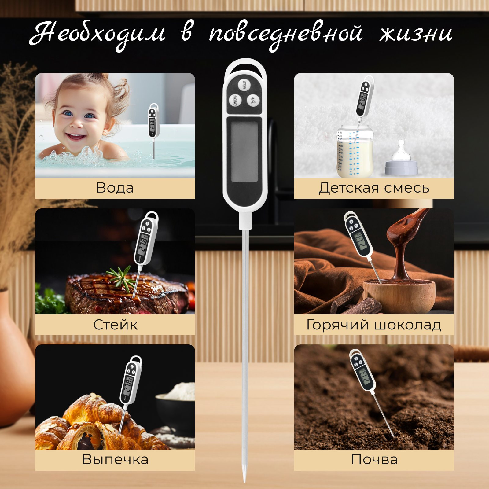 Термометр Кулинарный / Барбекю термометр / Термощуп / Термометр Кухонный / Термометр ULBI K4 интересное: