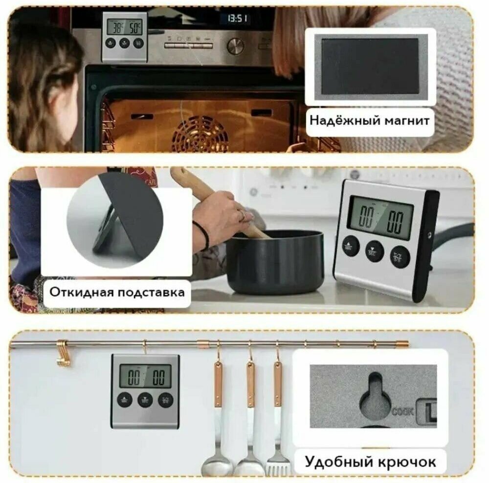 Кулинарный термометр электронный со щупом из нержавеющей стали, термометр для еды, мяса, вина, провод 1 метр / таймер кухонный