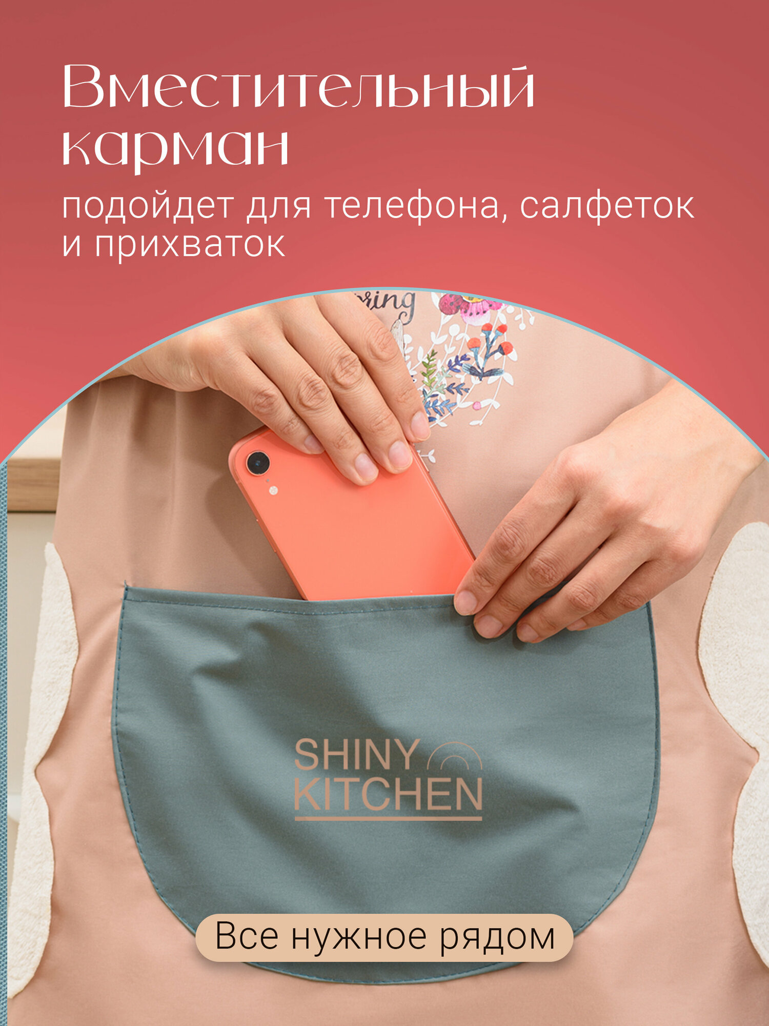 Фартук непромокаемый кухонный с карманом, Shiny Kitchen, Передник женский поварской водонепроницаемый, Розовый интересное: