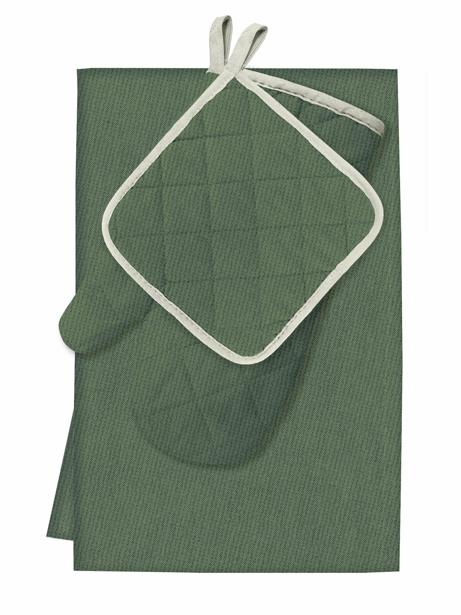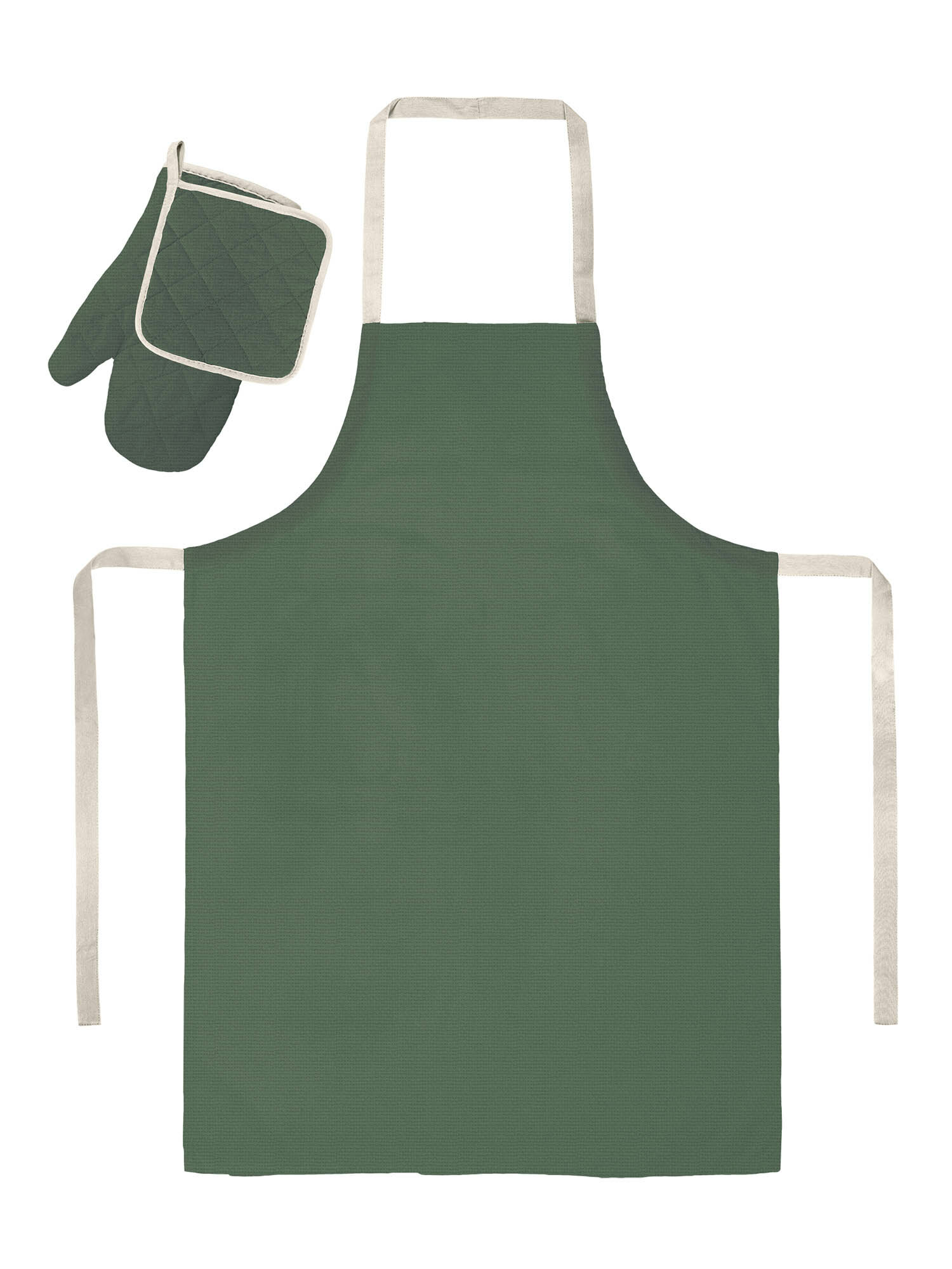 Купить Комплект кухонный рогожка (прихватка 18х18, прихватка-рукавица 18х28, фартук 60х70) "Унисон" рис 30004-20 Basic серо-зеленый