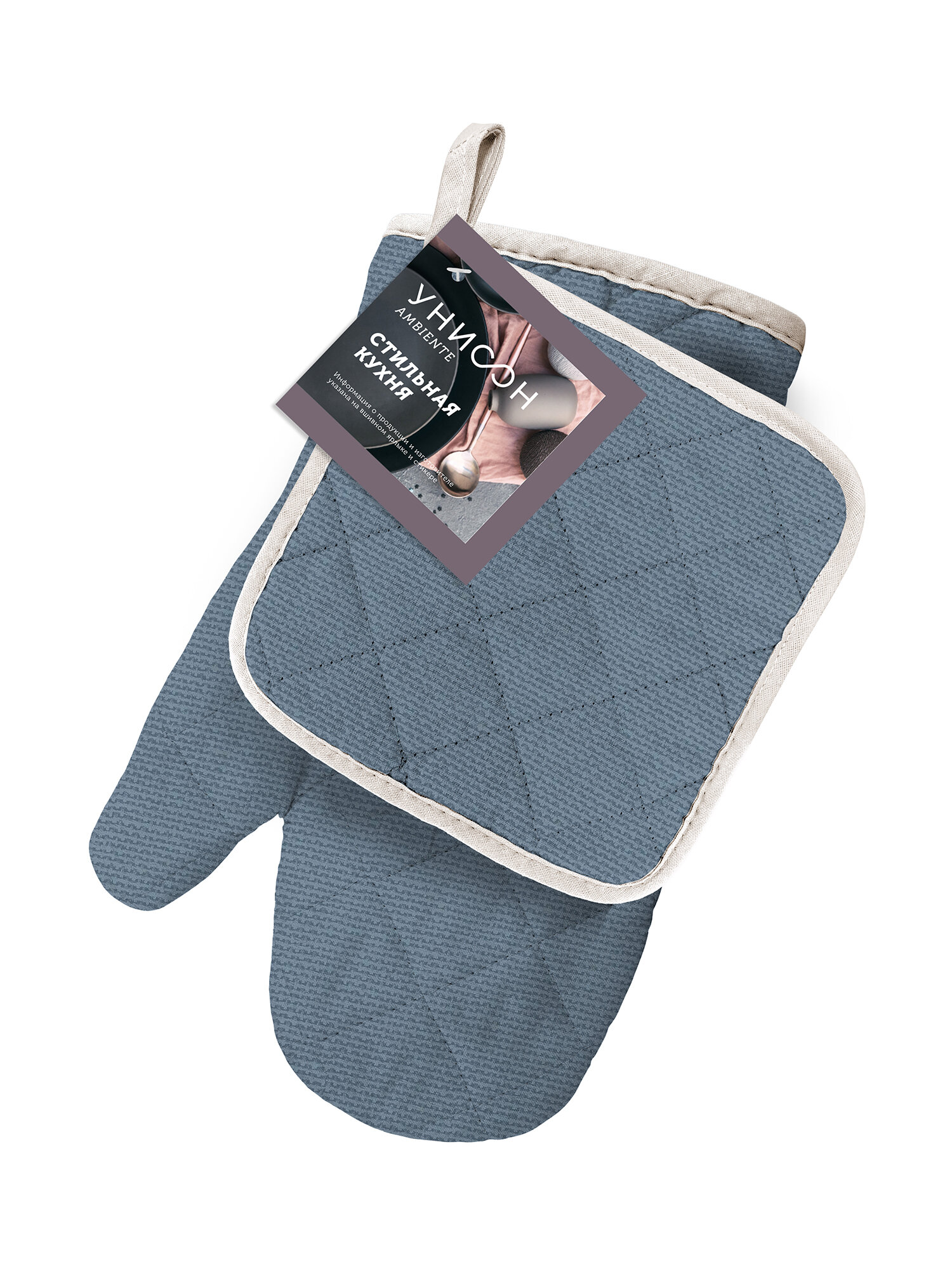 Комплект кухонный рогожка (прихватка 18х18, прихватка-рукавица 18х28) "Унисон" рис 33162-3 Nord