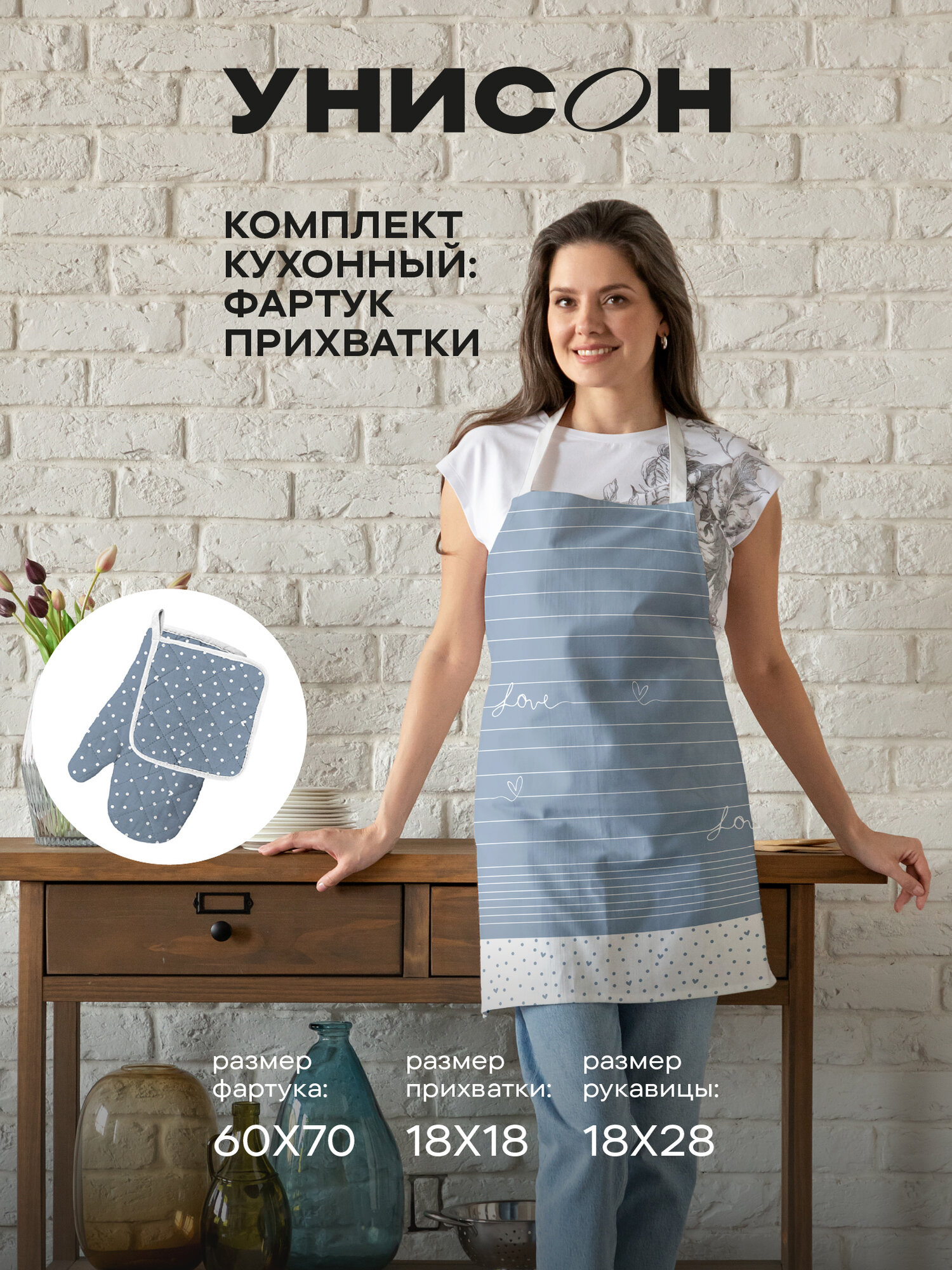 СохранитьКомплект кухонный рогожка (прихватка 18х18, прихватка-рукавица 18х28, фартук 60х70) "Унисон" рис 33001-3/33002-3 Love интересное: