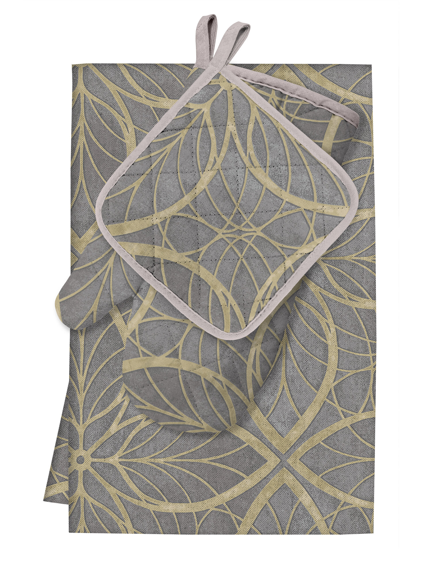 Комплект кухонный рогожка (прихватка 18х18, прихватка-рукавица 18х28) "Унисон" рис 30004-12 Basic светло-серый