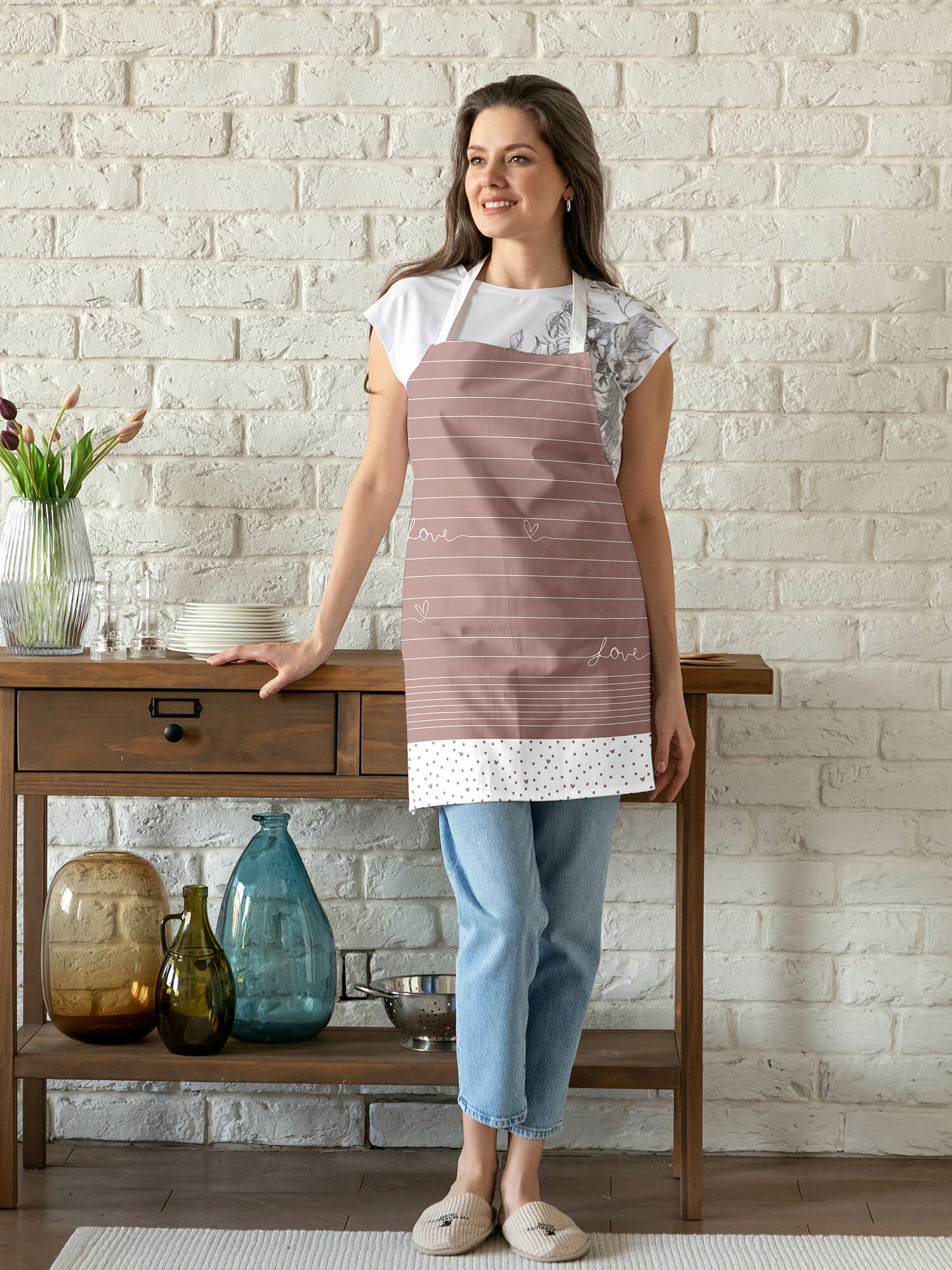 Фартук кухонный женский 60х70 на завязках , 100% Хлопок "Унисон" рис 33001-3 Love