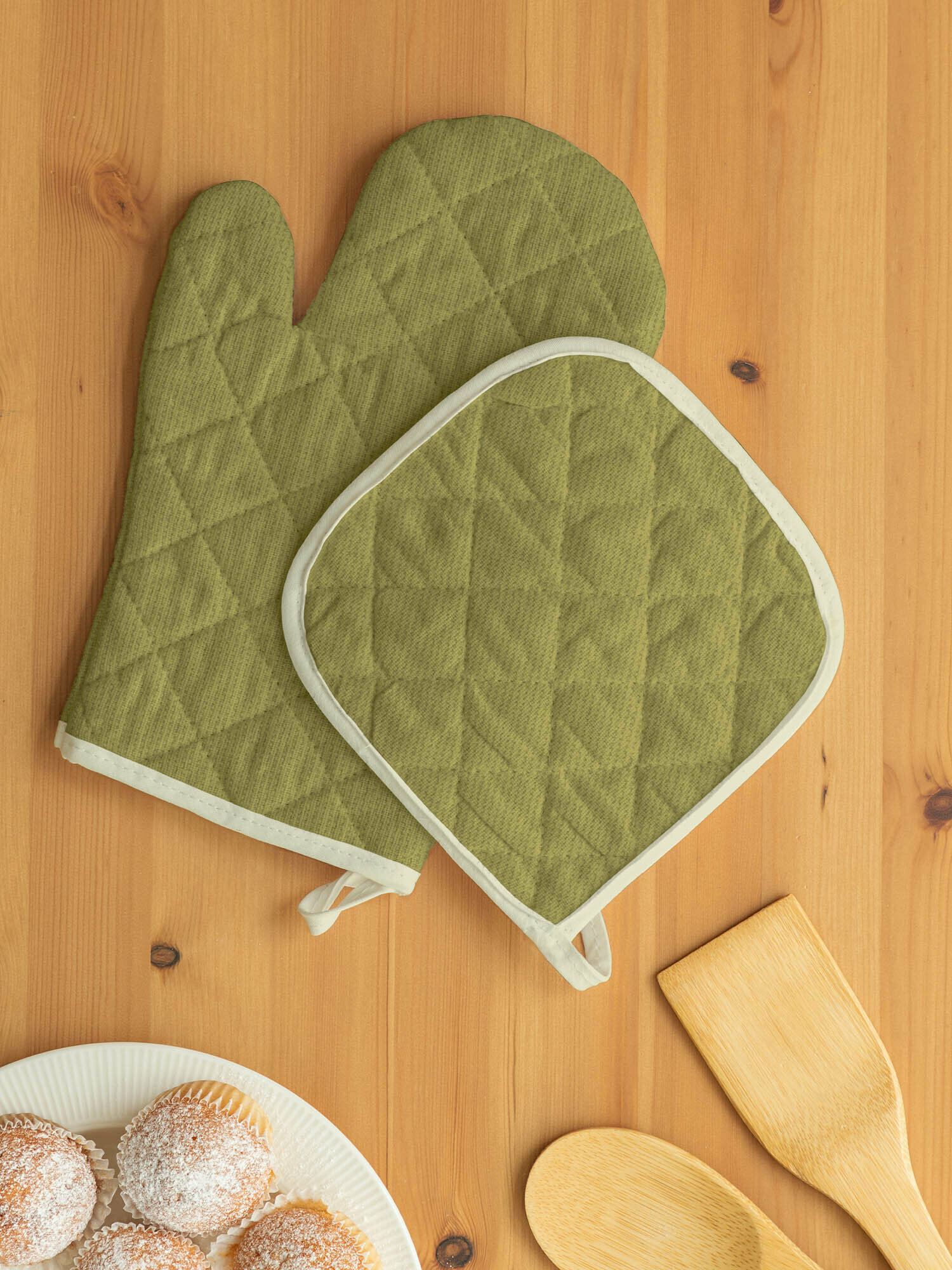 Купить Комплект кухонный рогожка (прихватка 18х18, прихватка-рукавица 18х28) "Унисон" рис 30004-21 Basic зеленый