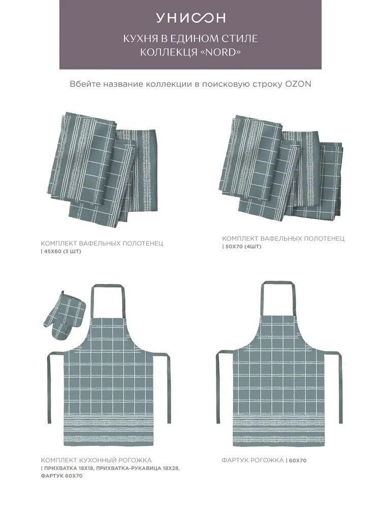 Комплект кухонный рогожка (прихватка 18х18, прихватка-рукавица 18х28, фартук 60х70) "Унисон" рис 33162-3 Nord
