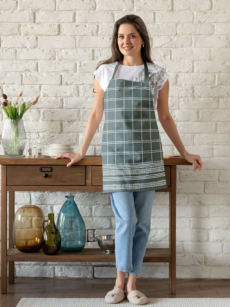 Фартук рогожка 60х70 "Унисон" рис 30004-20 Basic серо-зеленый
