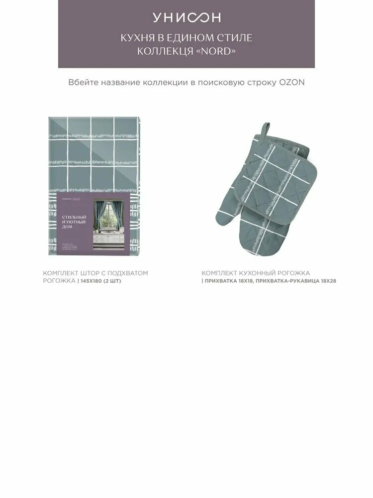 Комплект кухонный рогожка (прихватка 18х18, прихватка-рукавица 18х28) "Унисон" рис 33162-3 Nord