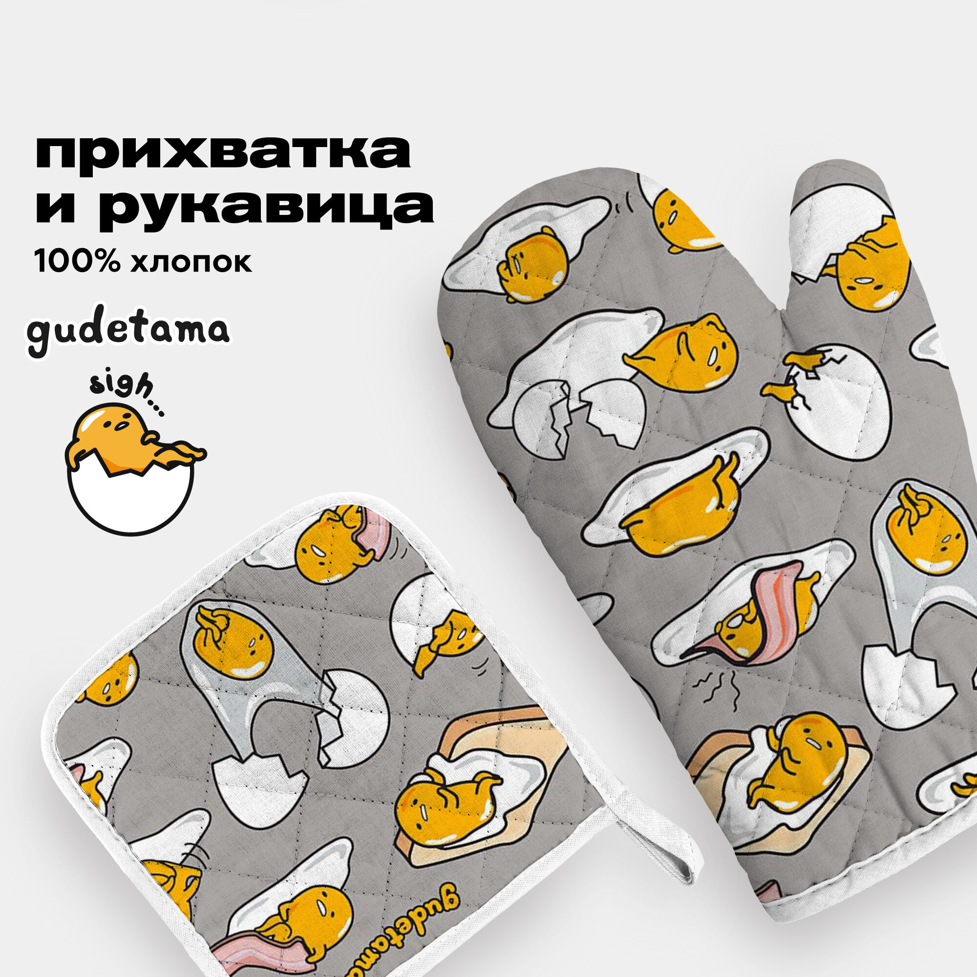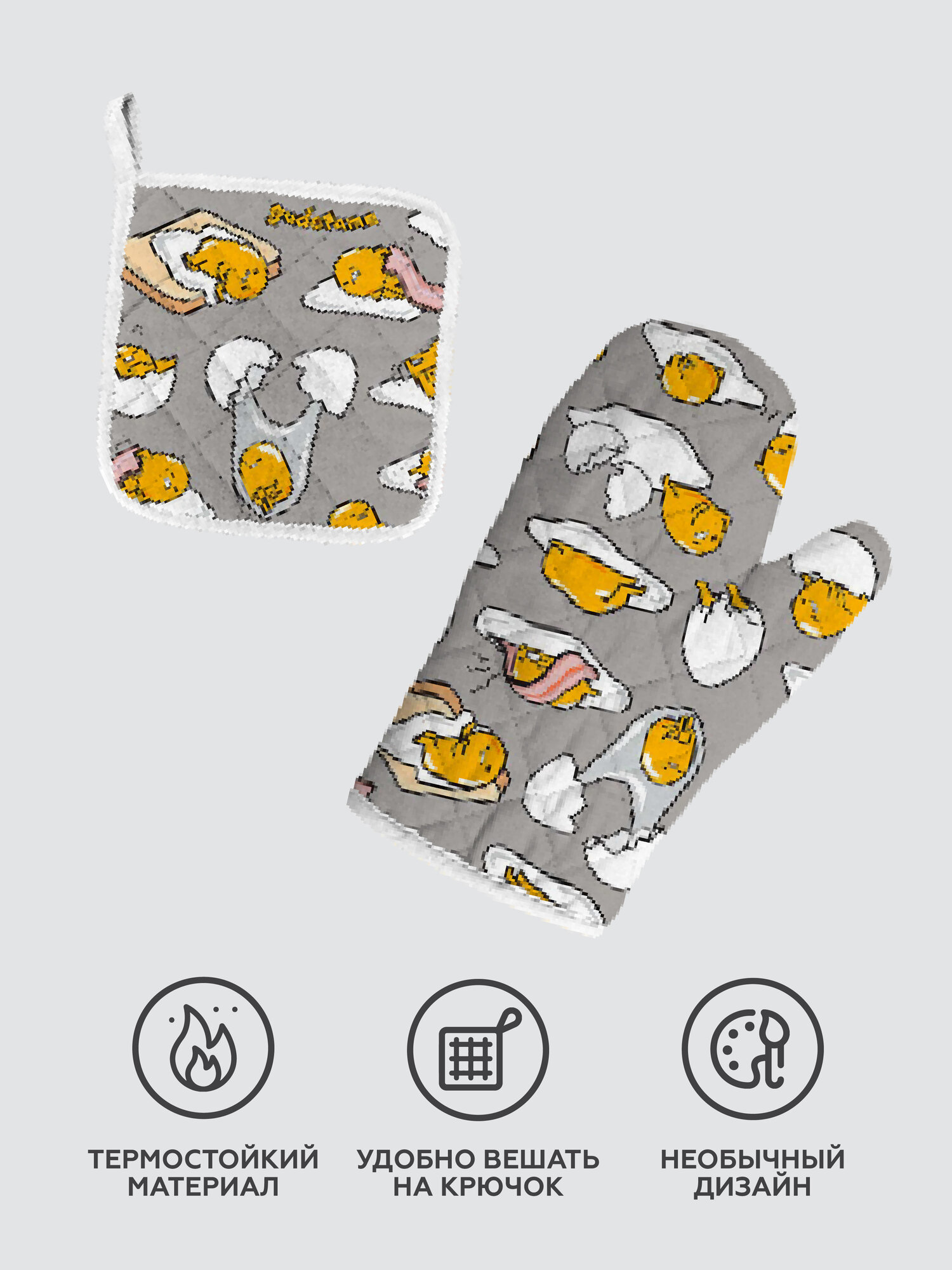 Купить Комплект кухонный рогожка (прихватка 18х18, прихватка-рукавица 18х28) "Непоседа" рис 16650-1 Gudetama