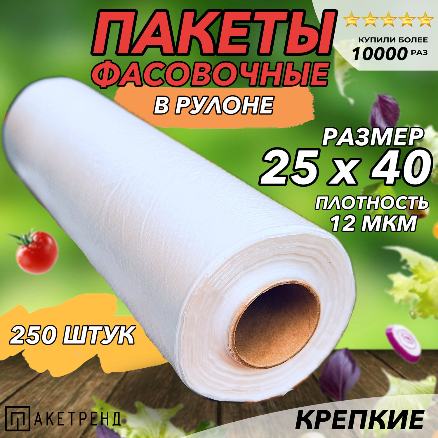 Купить Пакеты фасовочные 25х40 , 250 штук 12 мкм , пищевые в рулоне для упаковки продуктов, завтраков, овощей и для заморозки мяса