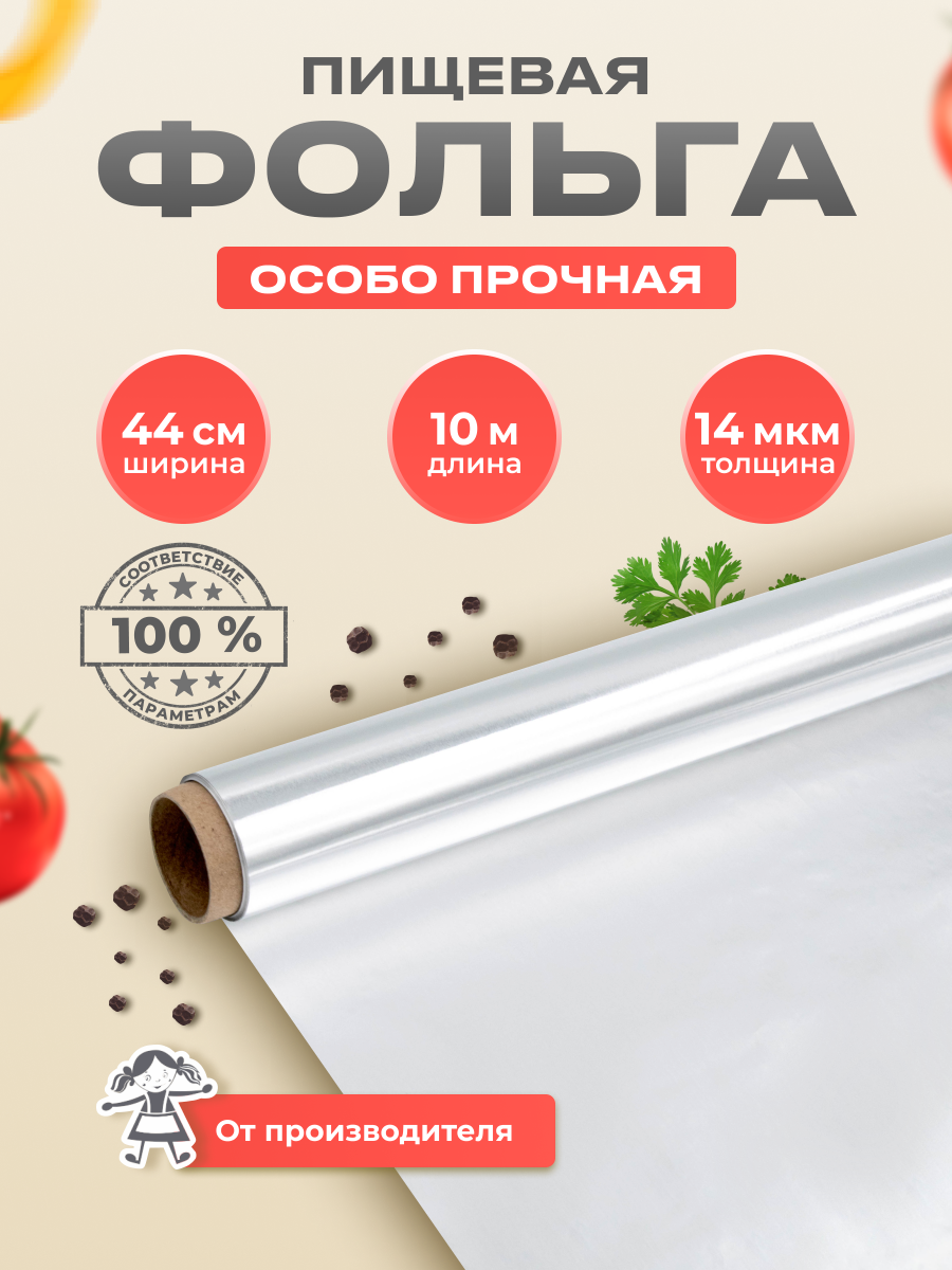 Купить Фольга пищевая для запекания "Домовушка", 44см х 10м, 14мкм, прочная