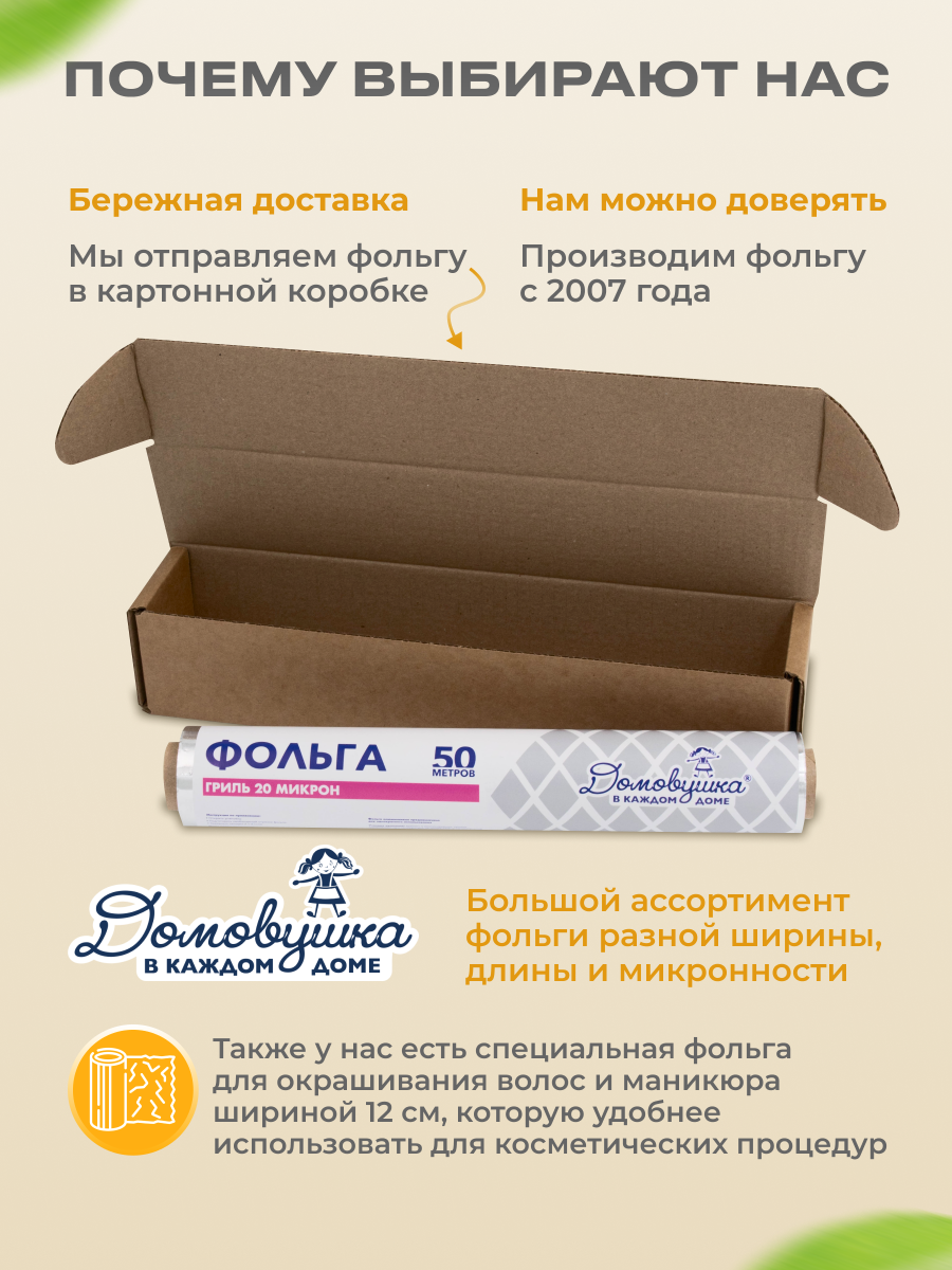 Фольга пищевая для запекания "Домовушка", 44см х 10м, 20мкм, прочная
