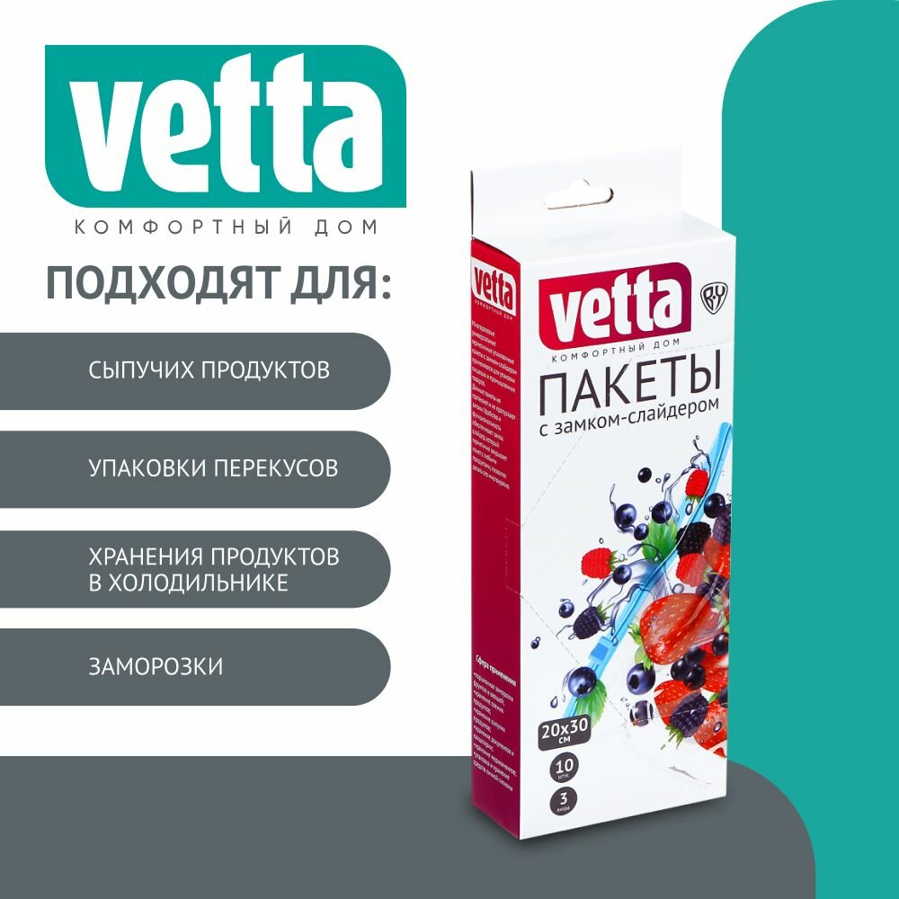 Купить VETTA Пакеты с замком-слайдером, 10шт, 20х30см, 50мкм, 3 литра, полиэтилен