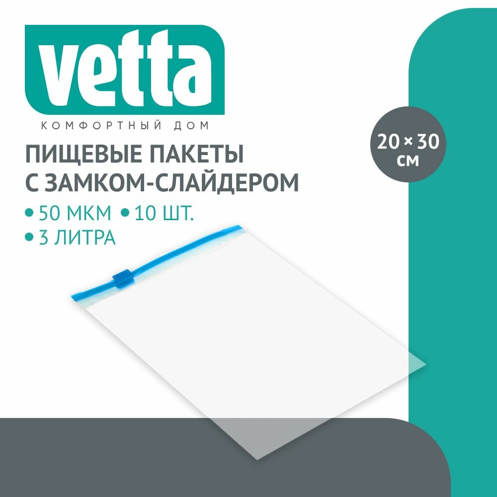 Пакеты Vetta с замком-слайдером 10шт, 20х30см 50мкм 3 литра (438-146)