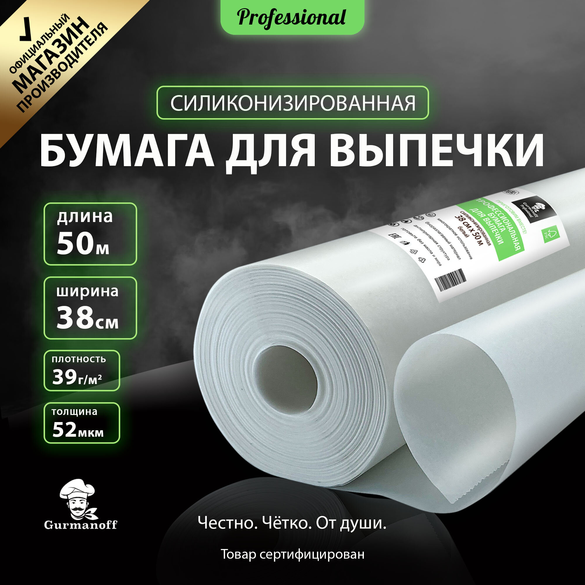 Купить Бумага для выпечки силиконизированная Gurmanoff 50м х 38см многоразовая белая /пергамент