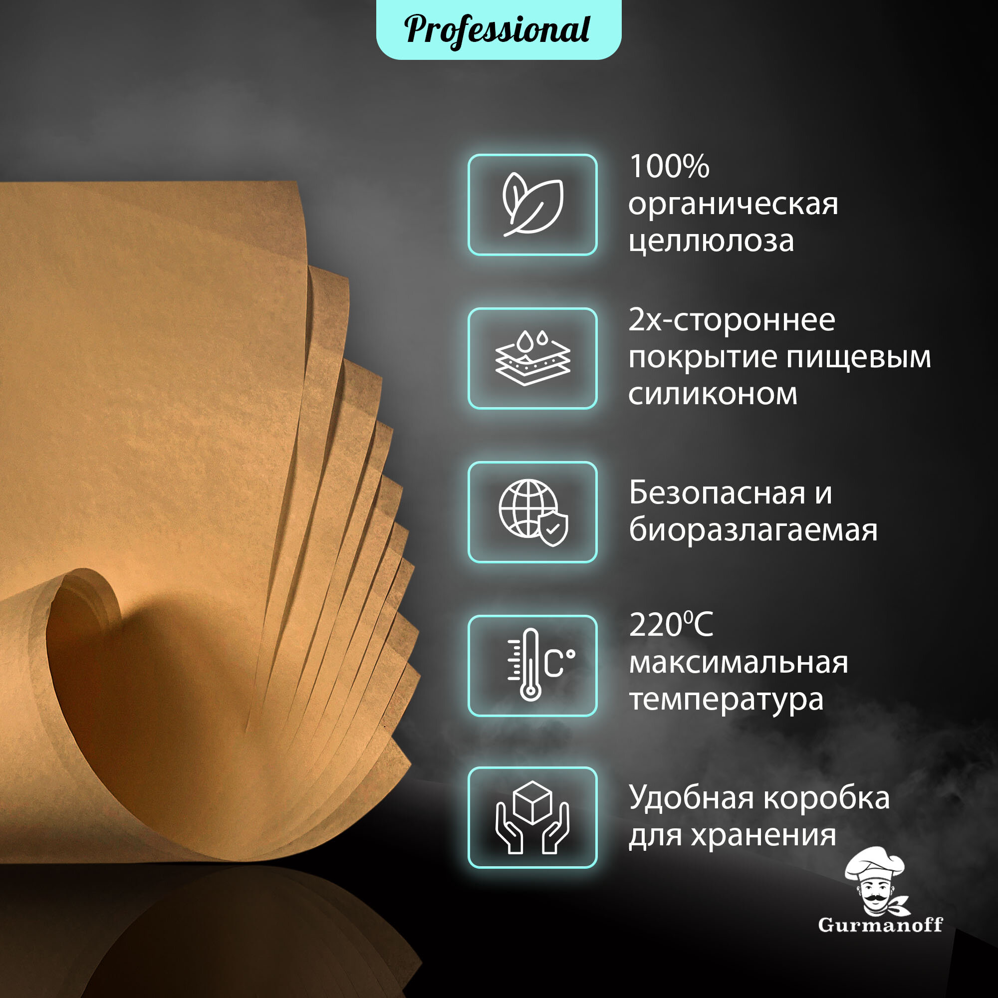 Бумага для выпечки силиконизированная Gurmanoff 500 листов 60см х 40см многоразовая крафт / пергамент