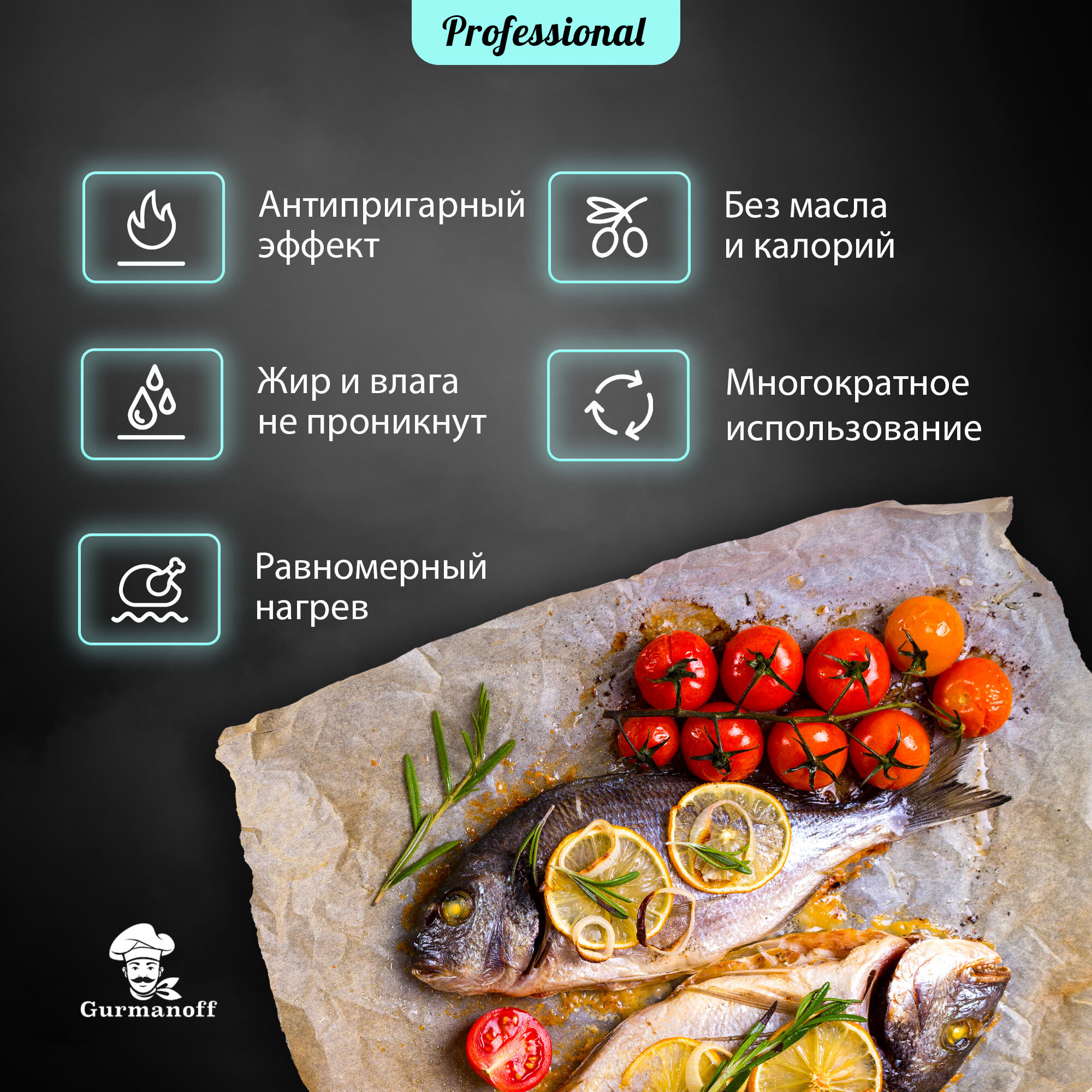 Бумага для выпечки силиконизированная 15 листов Gurmanoff 42см х 38см / многоразовый пергамент для выпекания