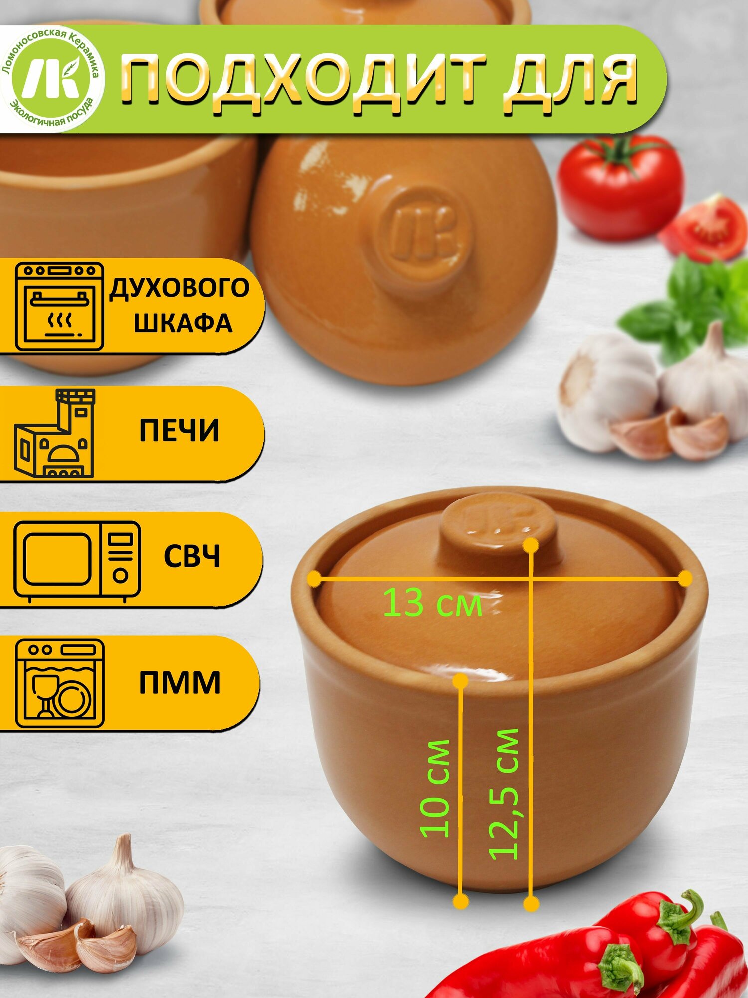 Горшочек "Ломоносовский" Ломоносовская керамика 0,7л (Мрамор), 2шт