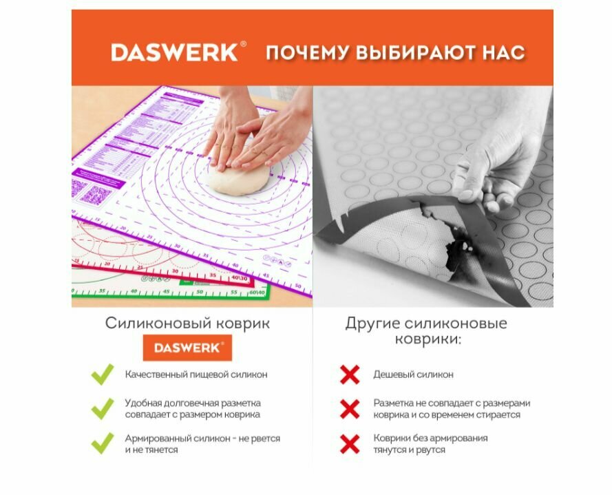 Коврик для раскатки и запекания DASWERK силиконовый, 40х60 см, фиолетовый, с пластиковым ножом