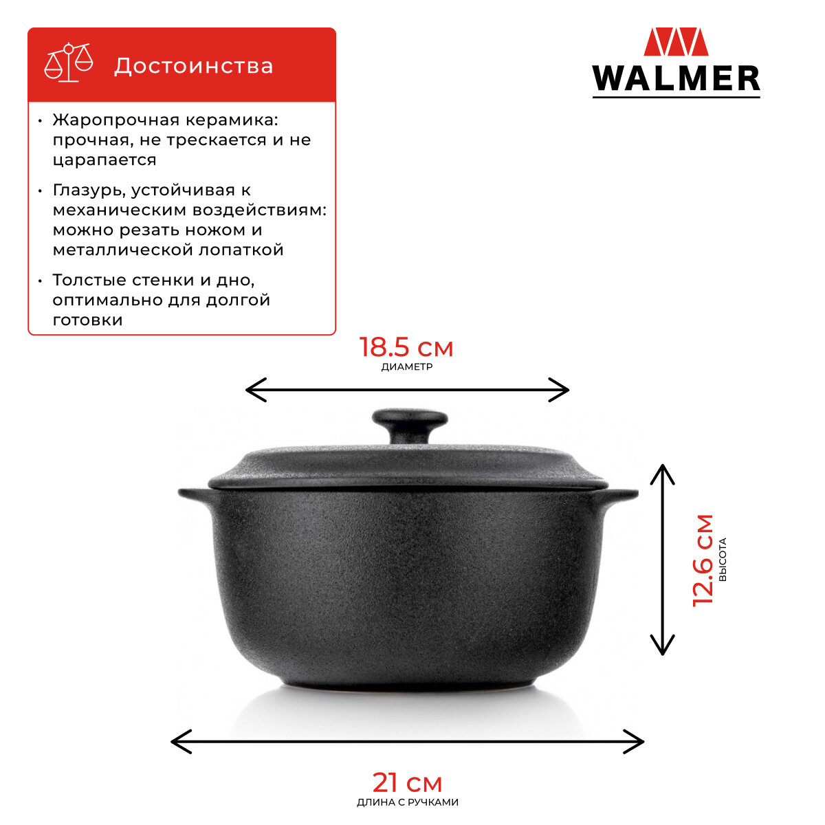 Форма для запекания walmer iron black 21х18,5см 1,5л круглая с крышкой керамика