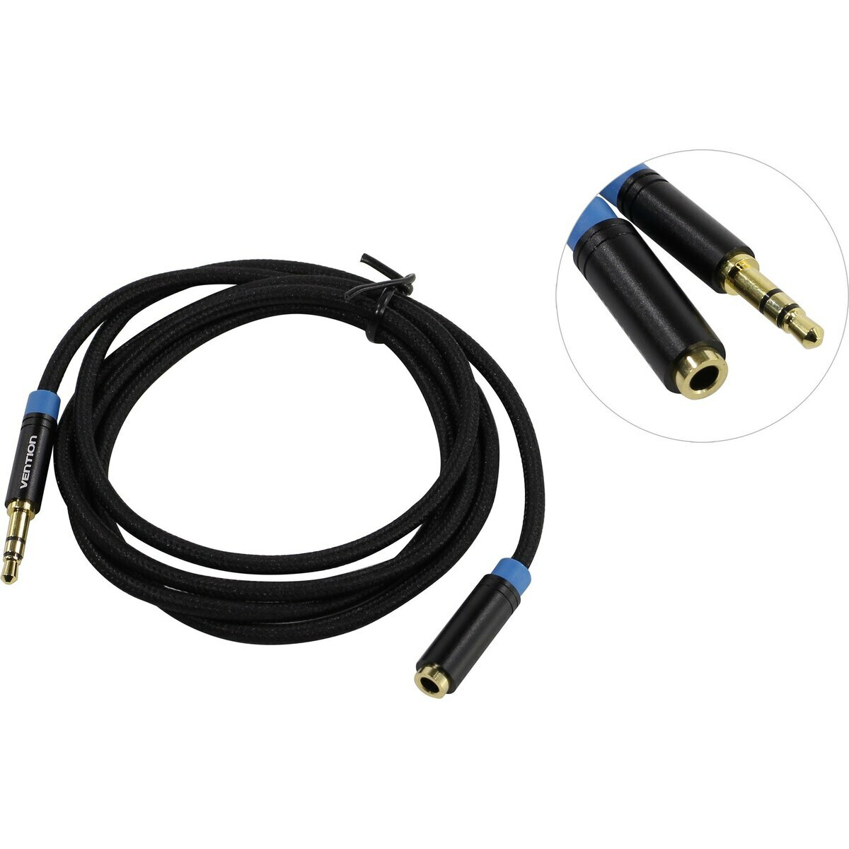 Кабель акустический Vention VAB-B06-B100-M удлинитель аудио, Jack 3,5 mm M/Jack 3,5 mm F, 1 м, тканевая оплетка