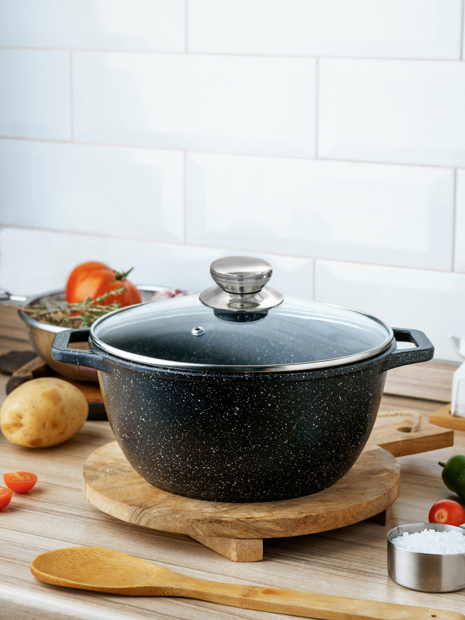 Кастрюля ALWA с крышкой 4 литра антипригарное покрытие, литая, цвет мрамор