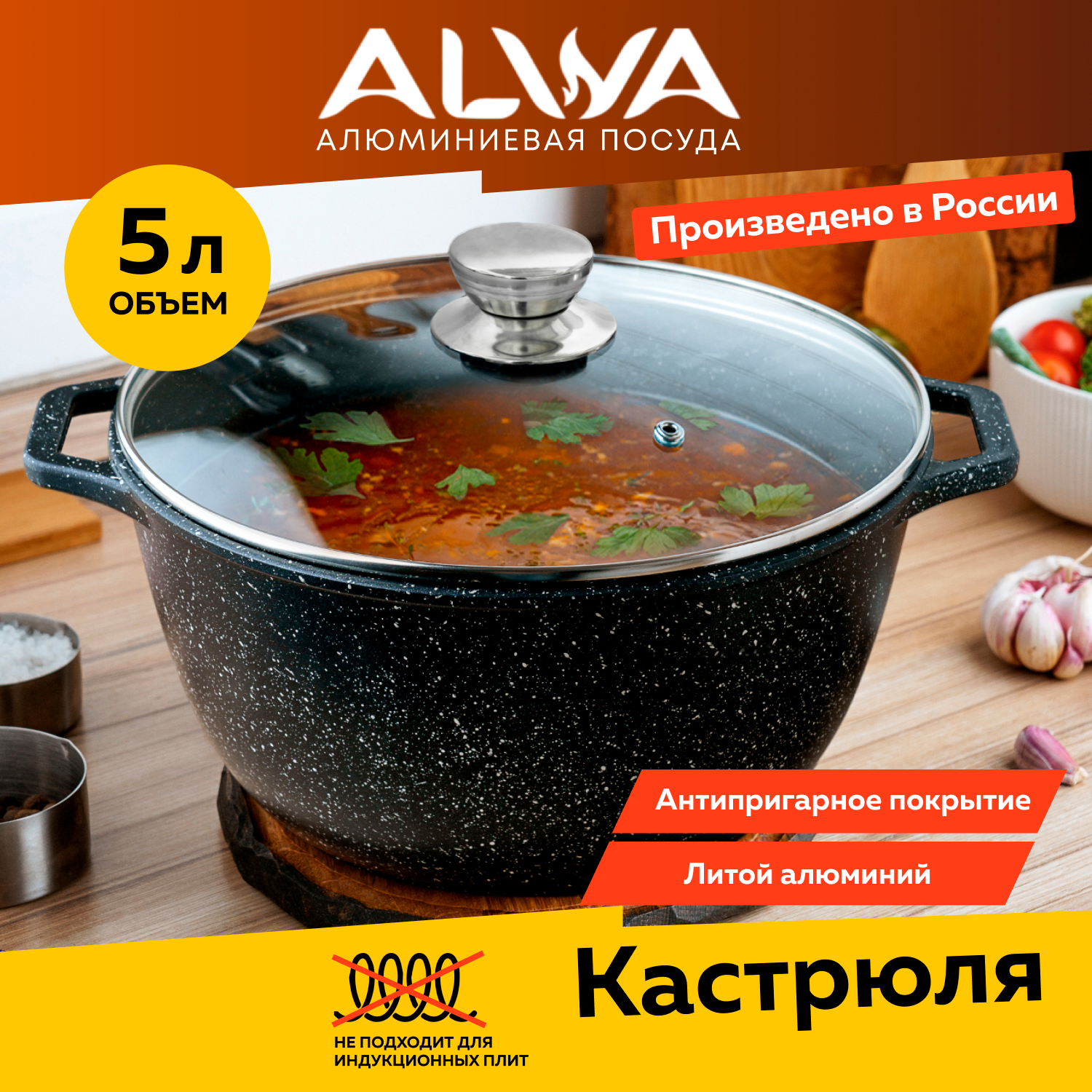 Купить Кастрюля 5 литров с крышкой ALWA литая с антипригарным покрытием
