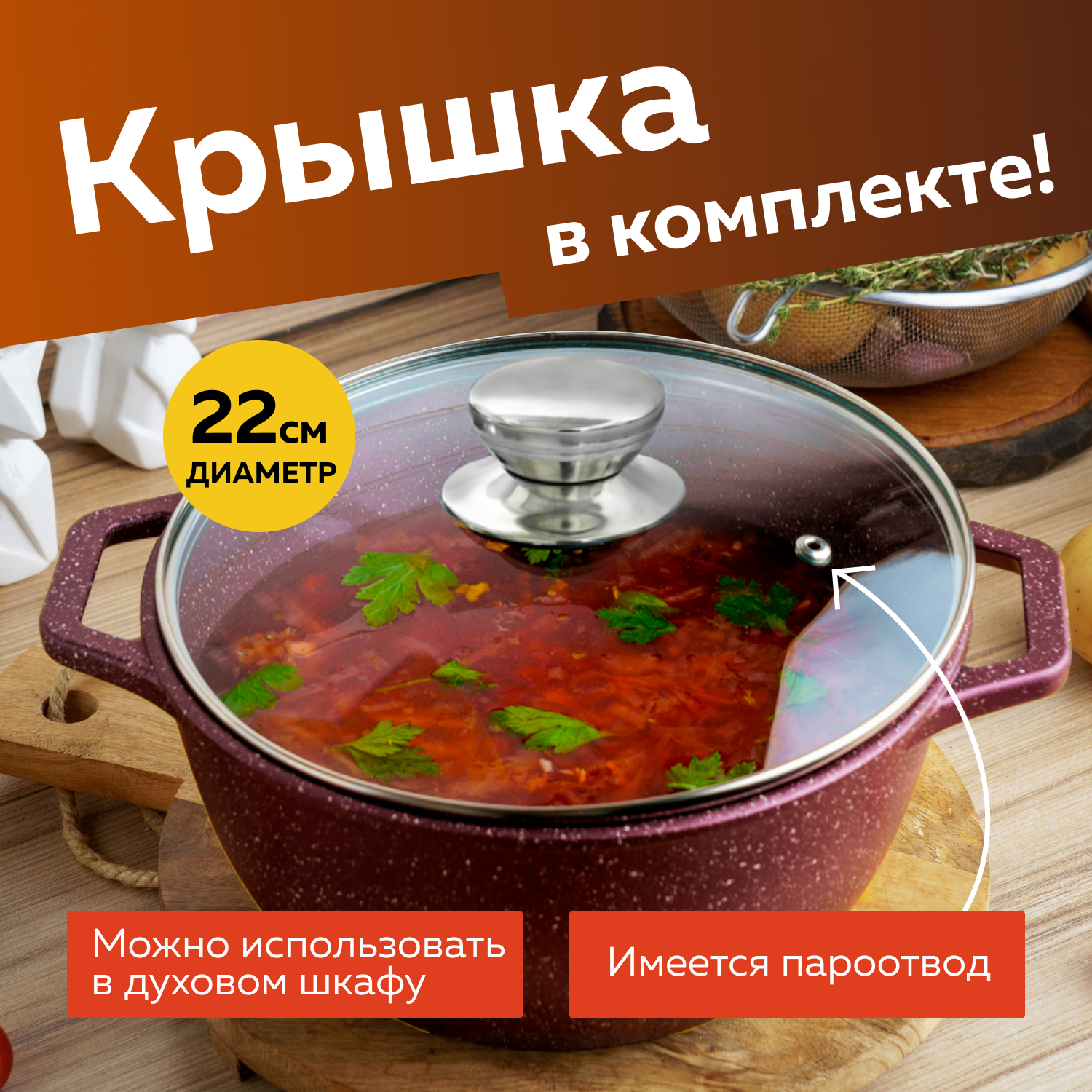 | Особенности | использование в духовке / мытье в посудомоечной машине / с крышкой / толстое дно |