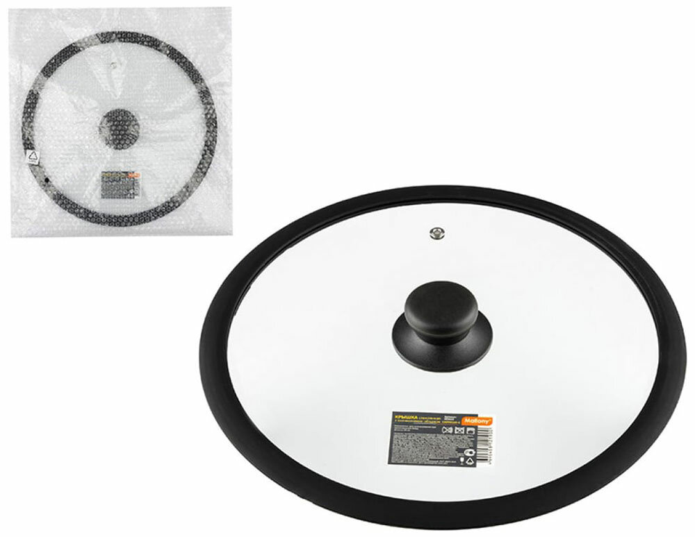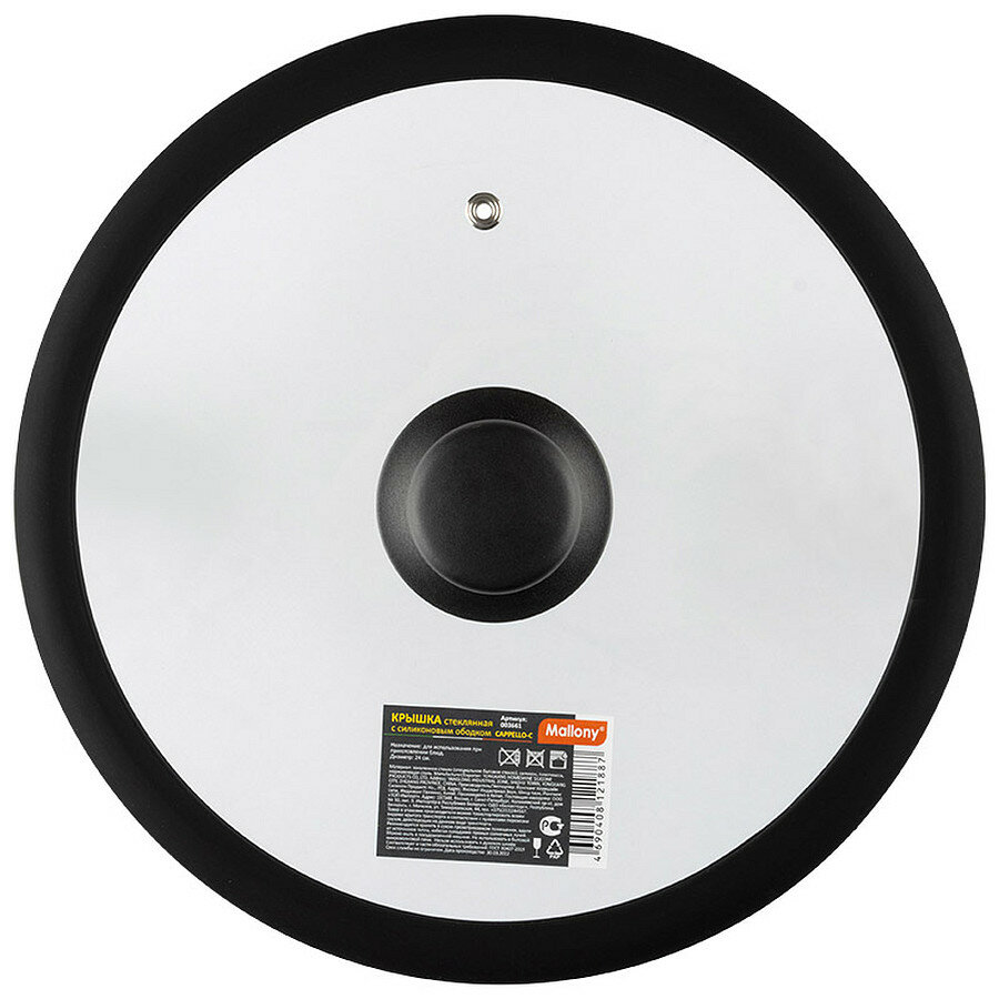 Крышка стеклянная C-type с силиконовым ободком, серия CAPPELLO-C, 24 см диа, сил ручка, тм Mallony (003661) интересное: